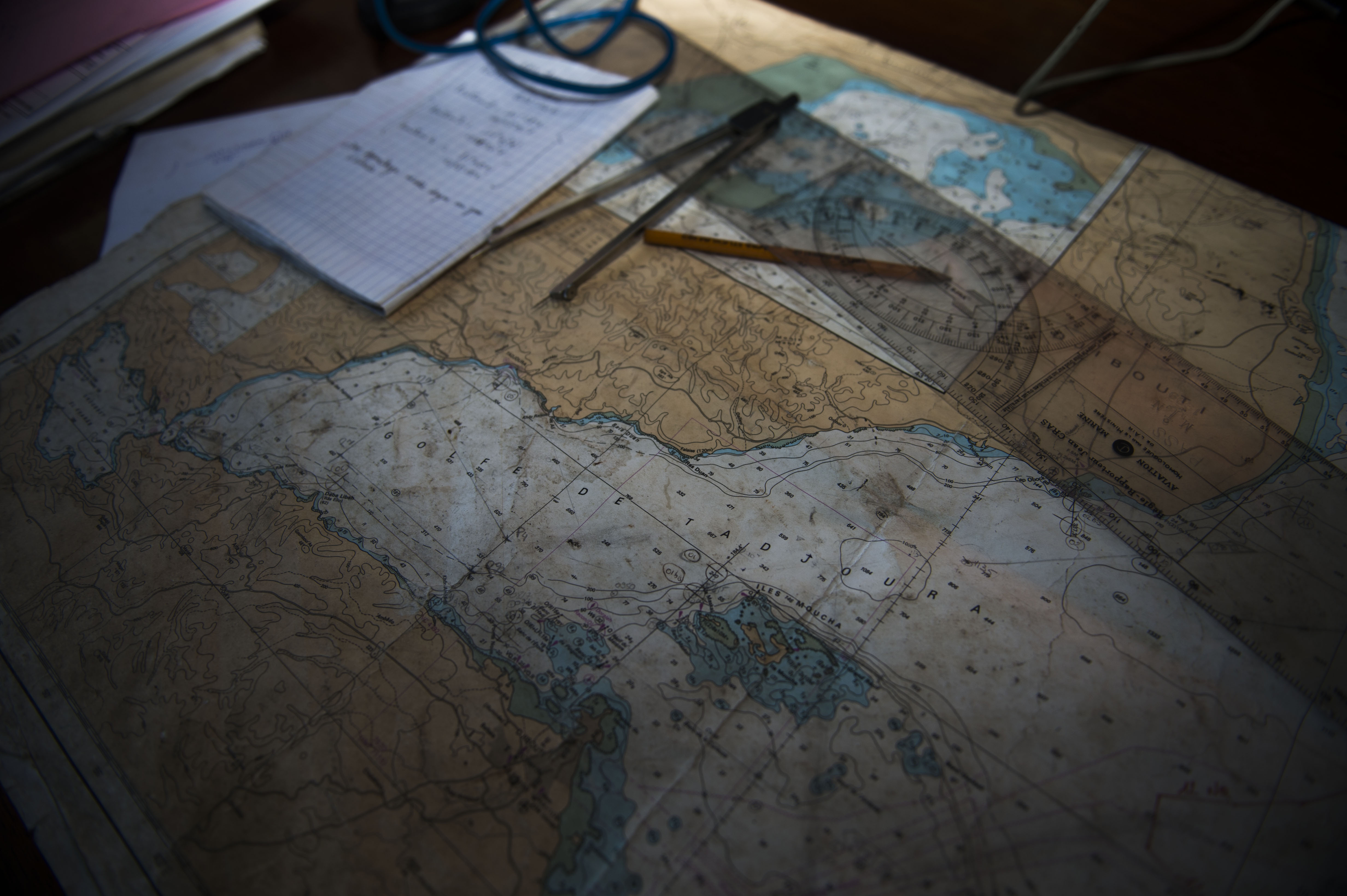 The charting maps for the Gulf of Tadjoura showing the exercise area of operations are displayed during Exercise Cutlass Express 2015 in Djibouti, Jan. 31, 2015. Sponsored by U.S. Africa Command, Exercise Cutlass Express 2015 is designed to improve regional cooperation, maritime domain awareness and information sharing practices to increase capabilities of East African and Indian Ocean nations to counter sea-based illicit activity. (U.S. Air Force photo by Staff Sgt. Carlin Leslie)