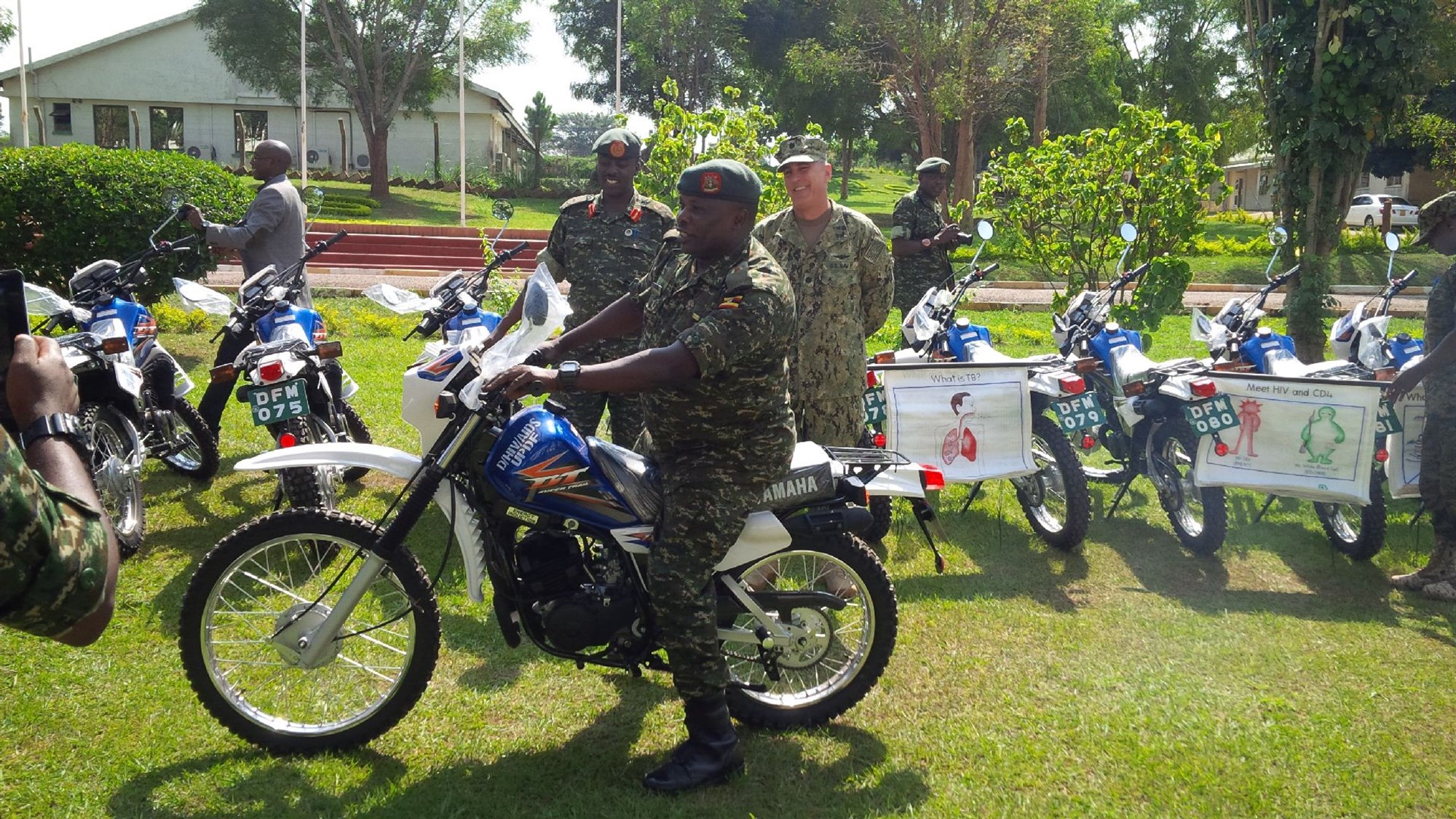 Uganda’s military plays a lead role in delivering medical services throughout the country. The dirt bikes, transferred under the United States President’s Emergency Plan for AIDS Relief, will allow military healthcare professionals to help stop the spread of AIDS and other diseases in previously inaccessible parts of Uganda.