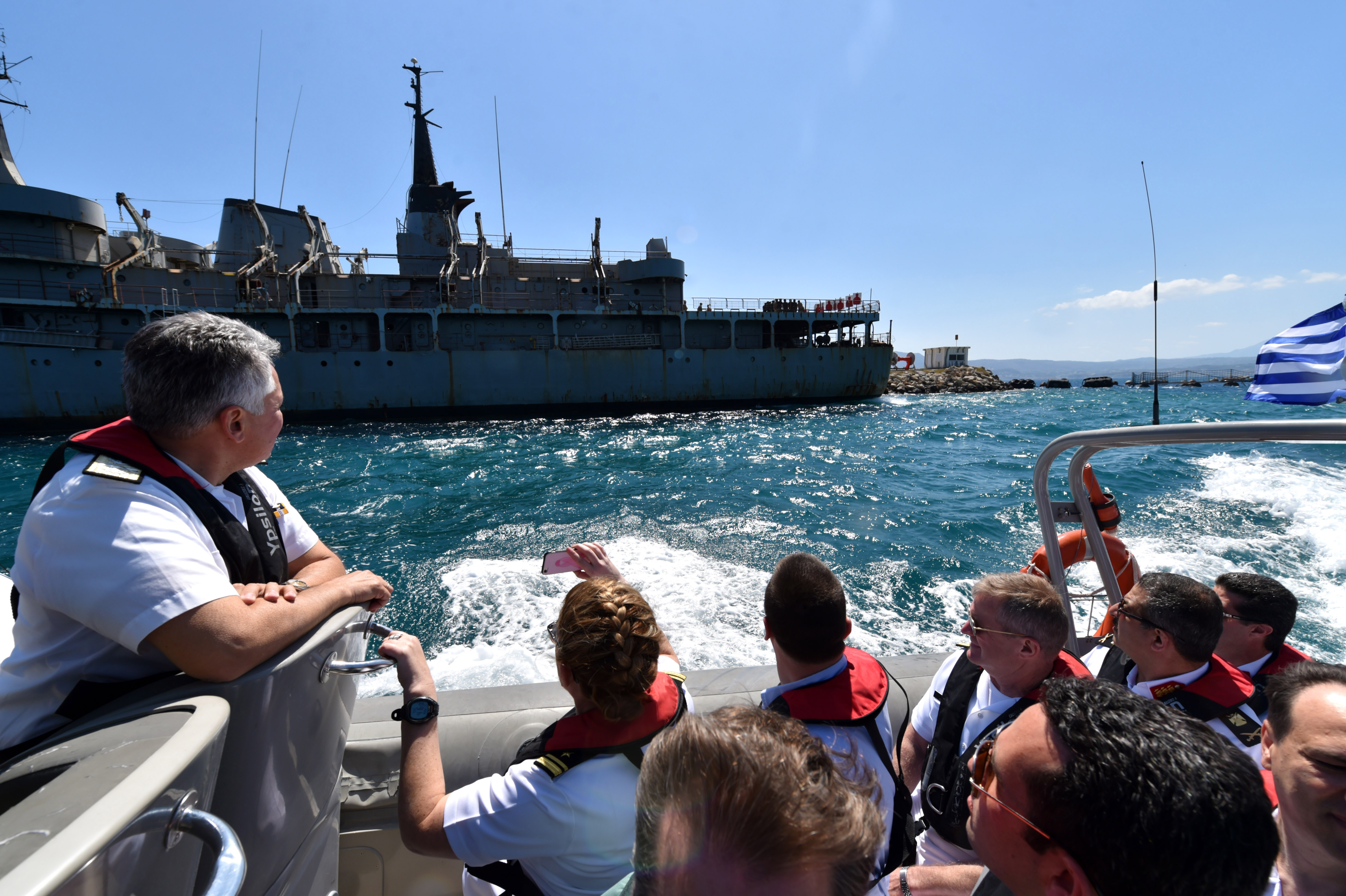 160517-N-XT273-320 SOUDA BAY, Greece (May 17, 2016) Maritime professionals from North Africa, Europe and the U.S. take a tour of Naval Support Activity Souda Bay on a Hellenic rigid hull inflatable boat after the Exercise Phoenix Express 2016 opening ceremony May 17. Phoenix Express 2016, sponsored and facilitated by U.S Africa Command, is designed to improve regional cooperation, increase maritime domain awareness, information-sharing practices, and operational capabilities to enhance efforts to achieve safety and security in the Mediterranean Sea. (U.S. Navy photo by Mass Communication Specialist 2nd Class Justin Stumberg/Released)