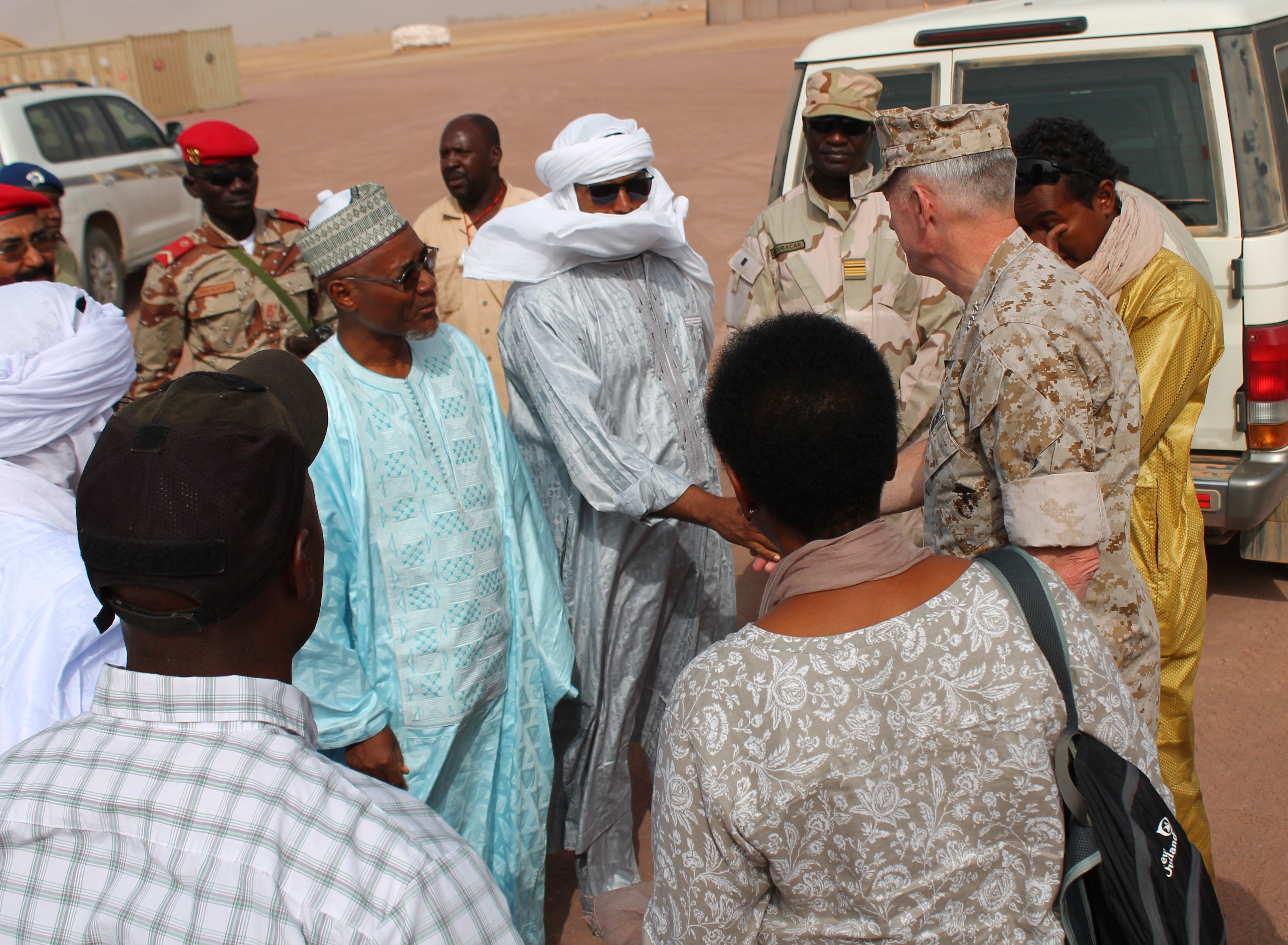 AGADEZ, Niger -- General Thomas D. Waldhauser, Commander, U.S. Africa Command, visited Niger Armed Forces' Air Base 201 to meet with U.S. troops, members of the Forces Armées Nigériennes (FAN), and local civilian leaders on Nov. 1. He was accompanied by U.S. Ambassador to Niger Eunice S. Reddick.