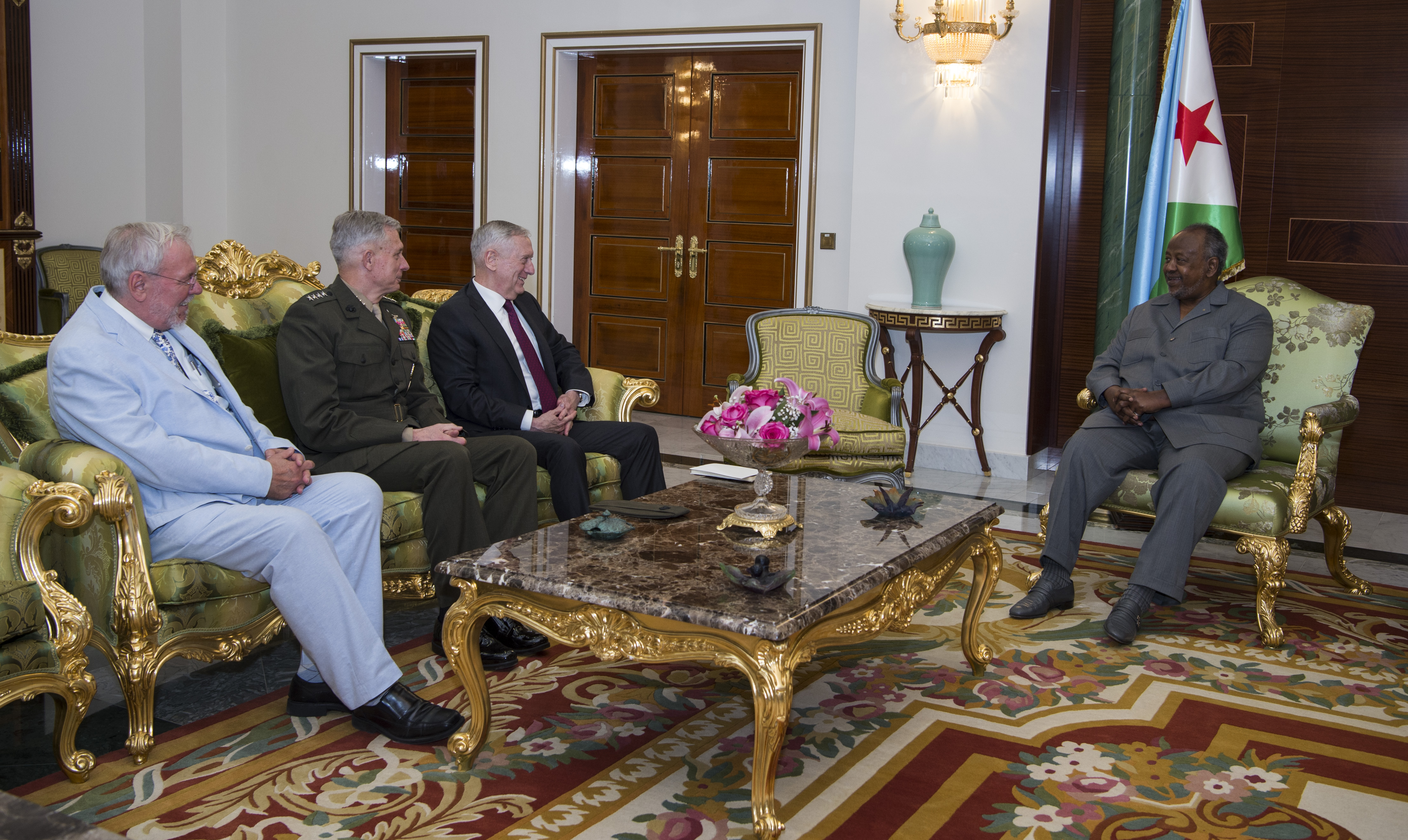 "Our two countries enjoy an excellent relationship, centered on security cooperation and activities that benefit the economy and welfare of both peoples. The United States contributes more than $140 million to the Djiboutian economy each year and is one of the largest employers, employing more than 2,500 Djiboutian at the U.S. military installation Camp Lemonnier and U.S. Embassy," said Mattis.