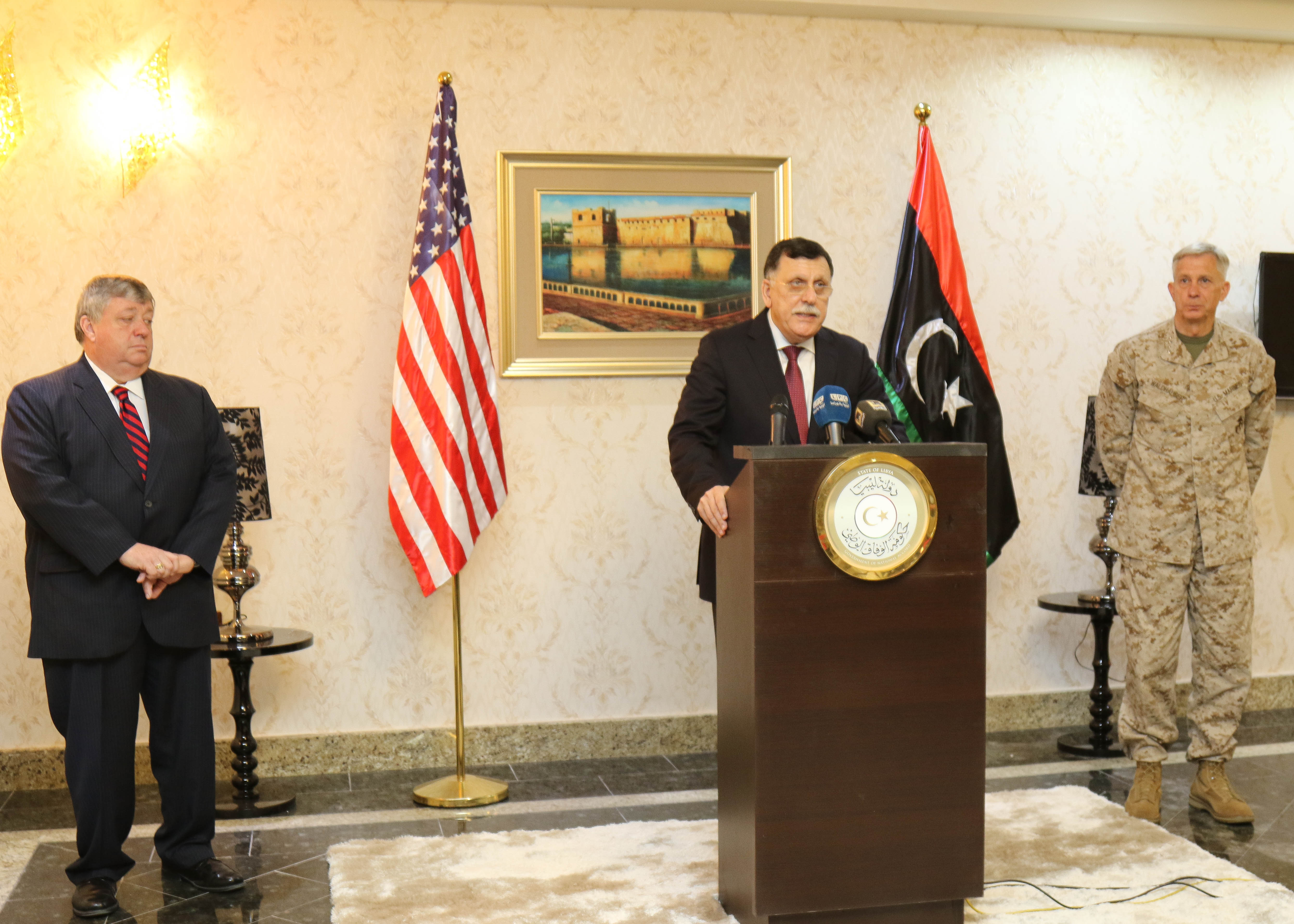 STUTTGART, GERMANY (May 23, 2017) -- U.S. Marine Corps Gen. Thomas D. Waldhauser, Commander, U.S. Africa Command, and Amb. Peter Bodde, U.S. Ambassador to Libya, met with the Prime Minister of Libya's Unity Government Fayez al-Sarraj in Tripoli, Libya May 23, 2017.