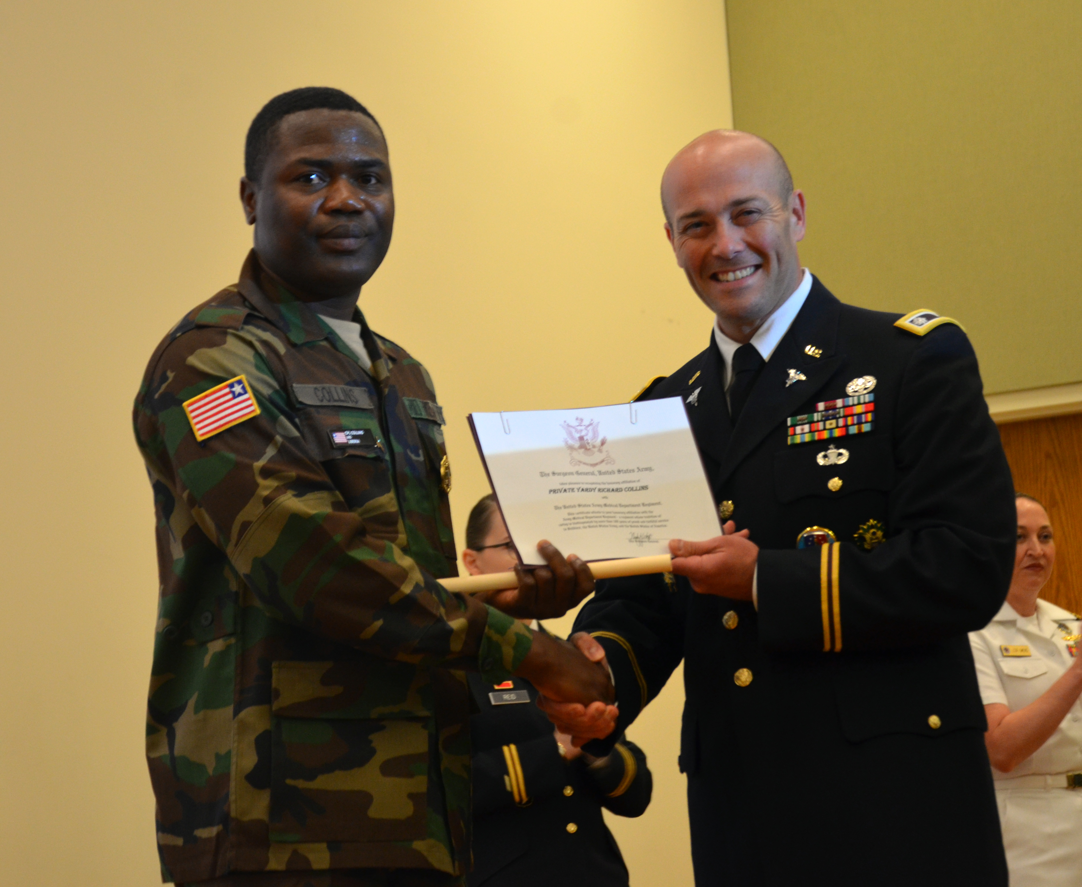 According to Mr. Oscar Ramos, director of the U.S. Army Medical Department Center & School (AMEDDC&S) International Programs Division, which provides direct support to the international military students attending [joint] training under the auspices of the Department of State/ Department of Defense Security Cooperation Education and Training Program, Collins is one of a selected few Liberian enlisted soldiers to attend METC- hosted programs and the only one to have completed the preventive medicine specialist course from his country and U.S. Africa Command.