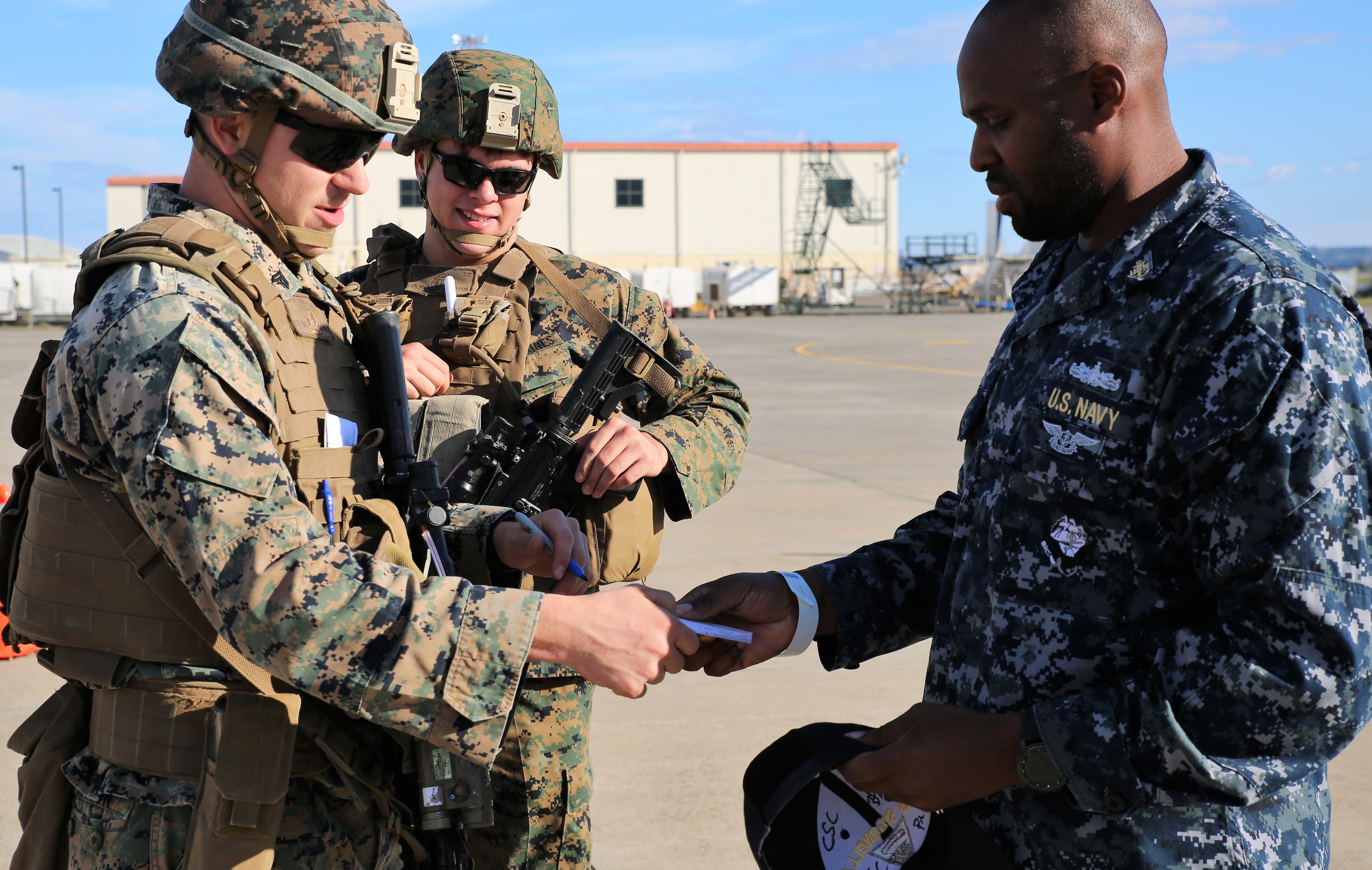 SPMAGTF-CR-AF Marines and Sailors conduct evacuation control center training