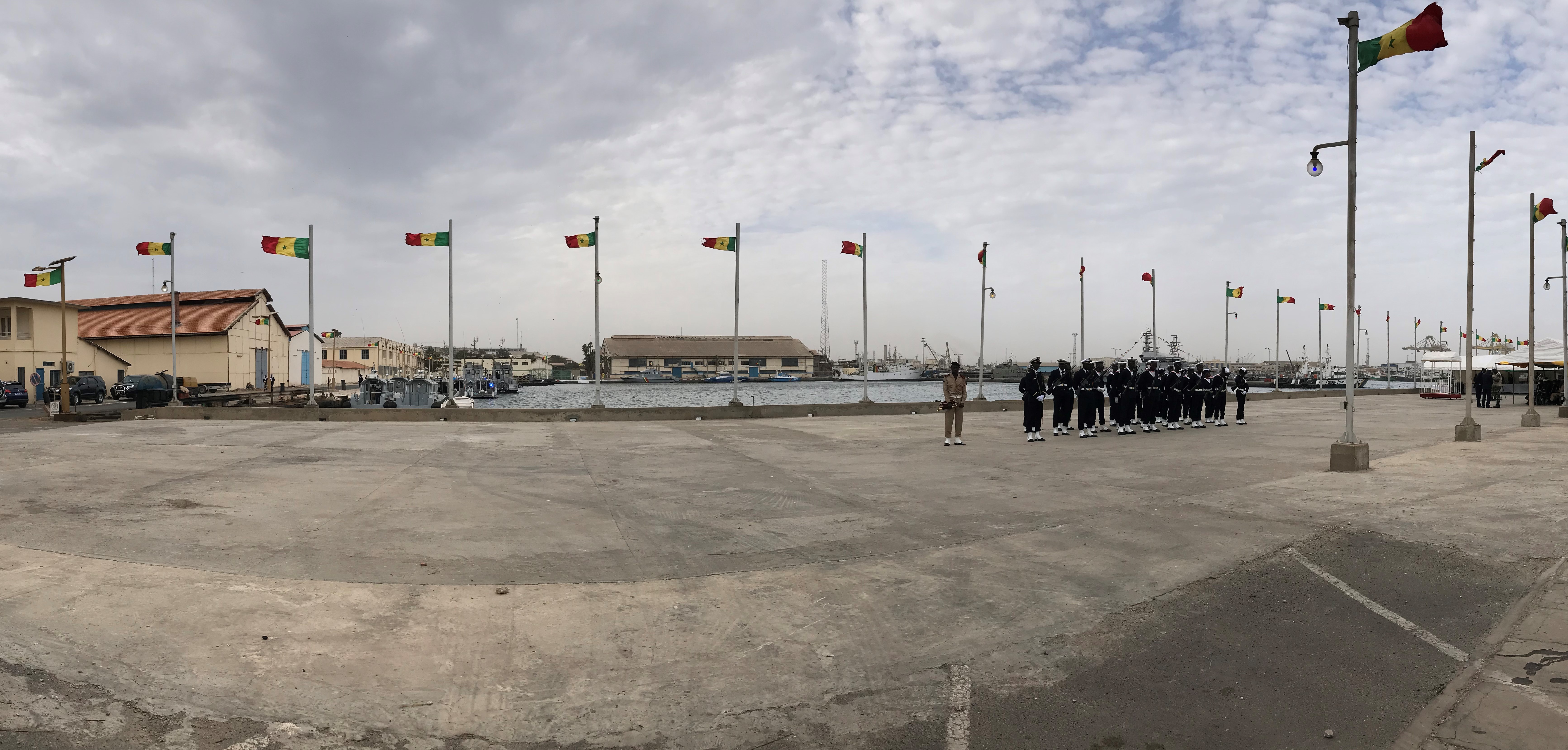 Senegalese Navy personnel participate in a handover ceremony of two 38 foot Defiant class patrol boat donated to the Senegalese by the U.S. Africa Command Counternarcotic and Transnational Threats Programs Division Feb. 8, 2018 in Dakar, Senegal.