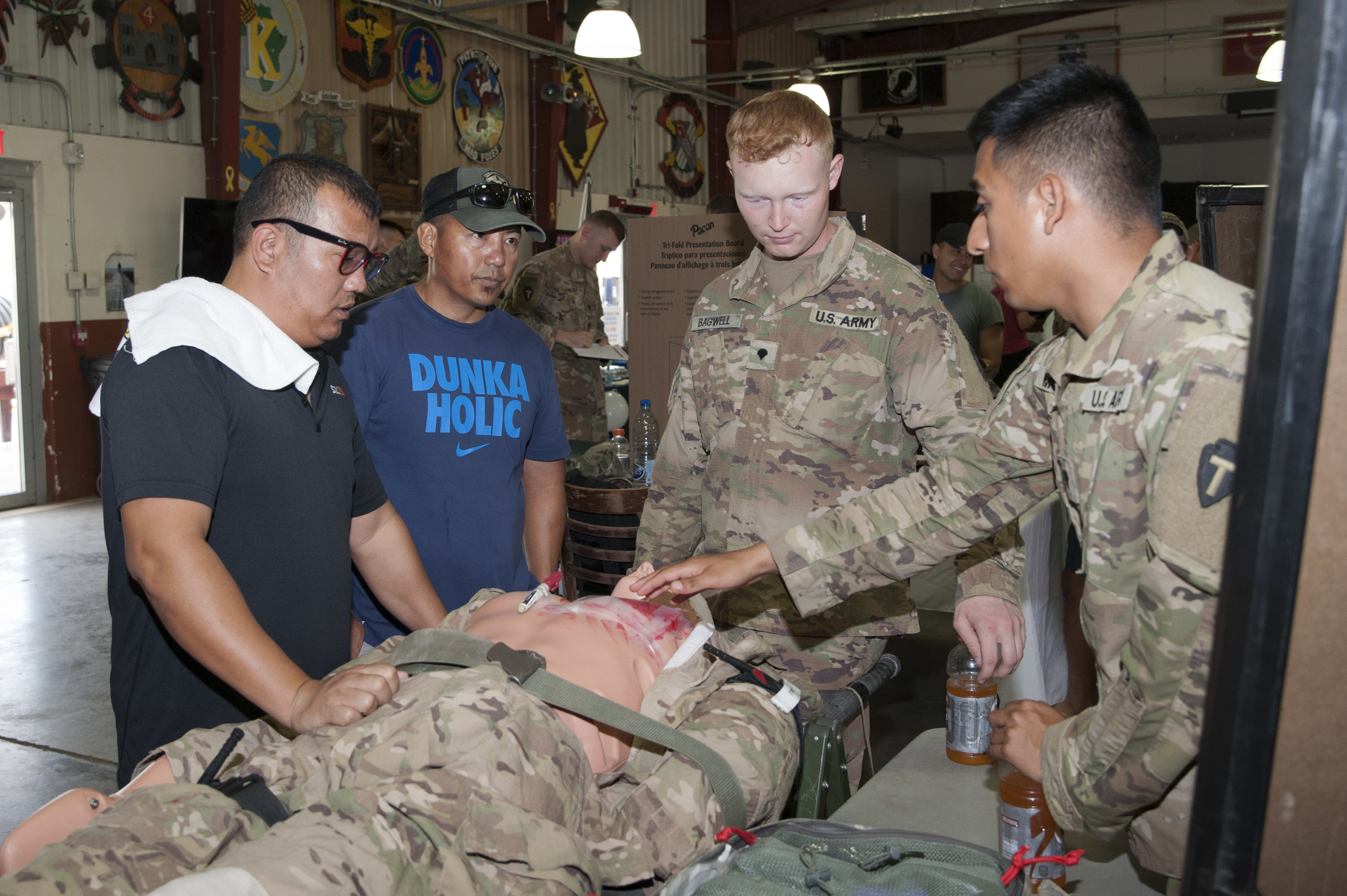 EMF personnel manned static display stations and provided services ranging from dry needle therapy, mental and dental health education, walking blood bank instructions, glucose testing, and blood pressure readings. Preventative Medicine shared information on all aspects of public health to include combating vectors, malaria education, and food safety inspection.