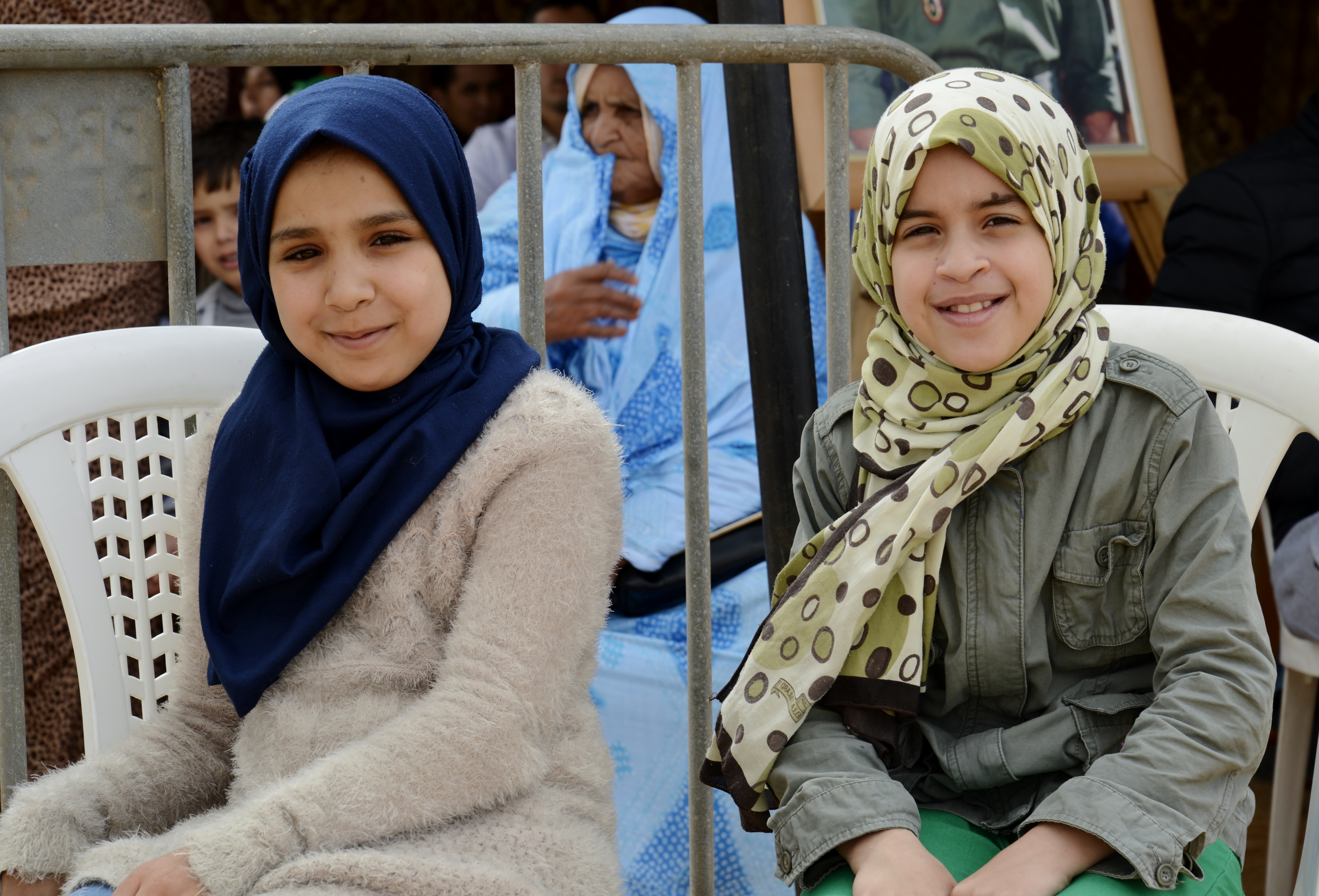 Two girls waiting for dental services during the Humanitarian Civic Assistance component of Exercise African Lion 2018 in Bounaamane, Morocco, April 24, 2018. Exercise African Lion 2018 is a Chairman of the Joint Chiefs of Staff-sponsored, U.S. African Command-scheduled, U.S. Marine Corps Forces Europe and Africa-led, joint and combined exercise conducted in the Kingdom of Morocco. African Lion offers an opportunity to improve interoperability and cooperation while demonstrating the strong military bond that exists between the participating nations. (U.S. Army National Guard photo by Maj. Samantha Madsen)