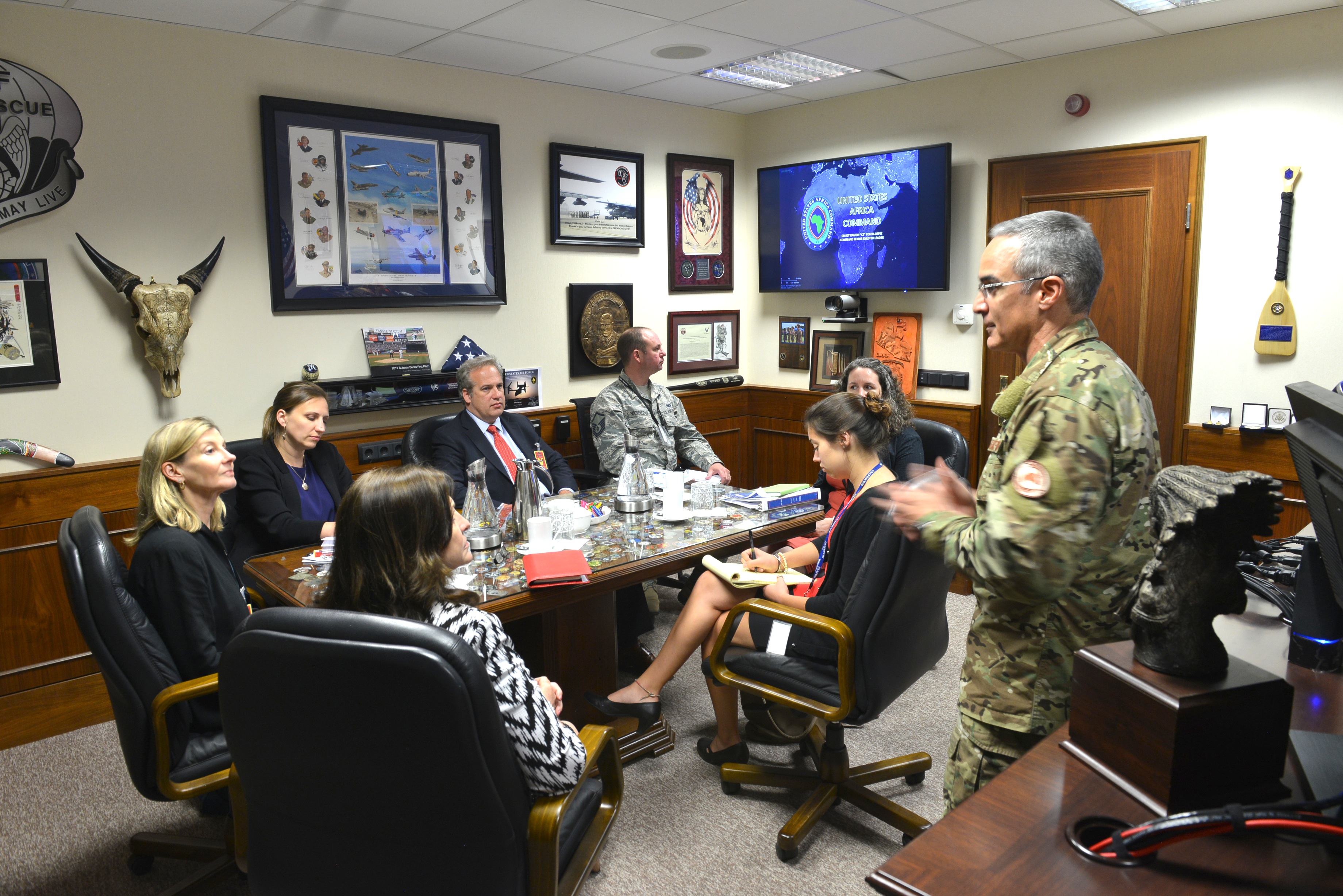 The visit started with a USIP briefing and overview, followed by a roundtable discussion led by Air Force Lt. Gen. James Vechery, AFRICOM deputy to the commander for military operations.