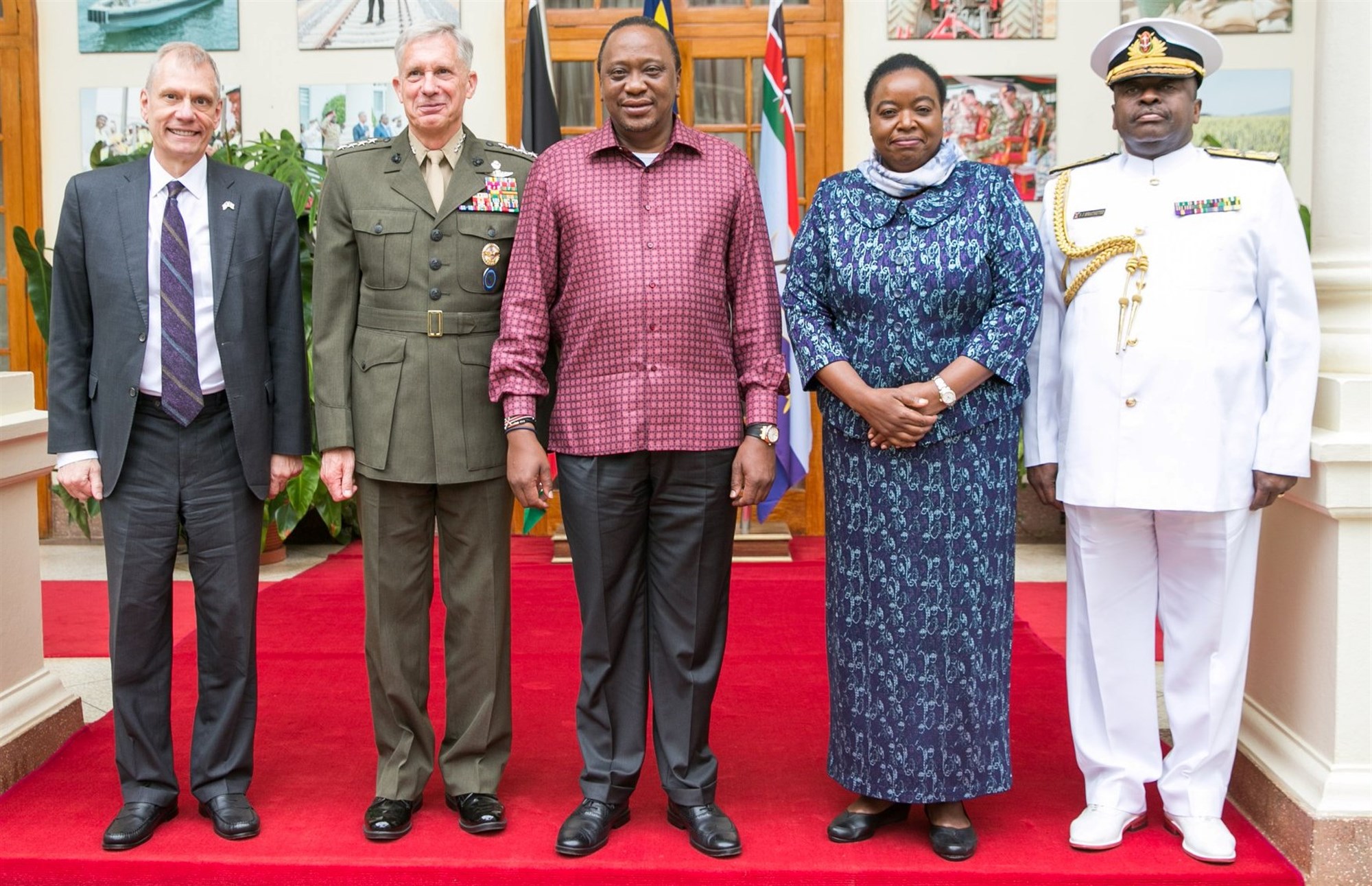 U.S. Marine Corps Gen. Thomas D. Waldhauser meets with Kenya President Uhuru Kenyatta July 11, 2018 in Nairobi, Kenya to discuss regional security issues. During the visit, Waldhauser also met with Chief of the Kenya Defence Forces Gen. Samson Mwathethe.