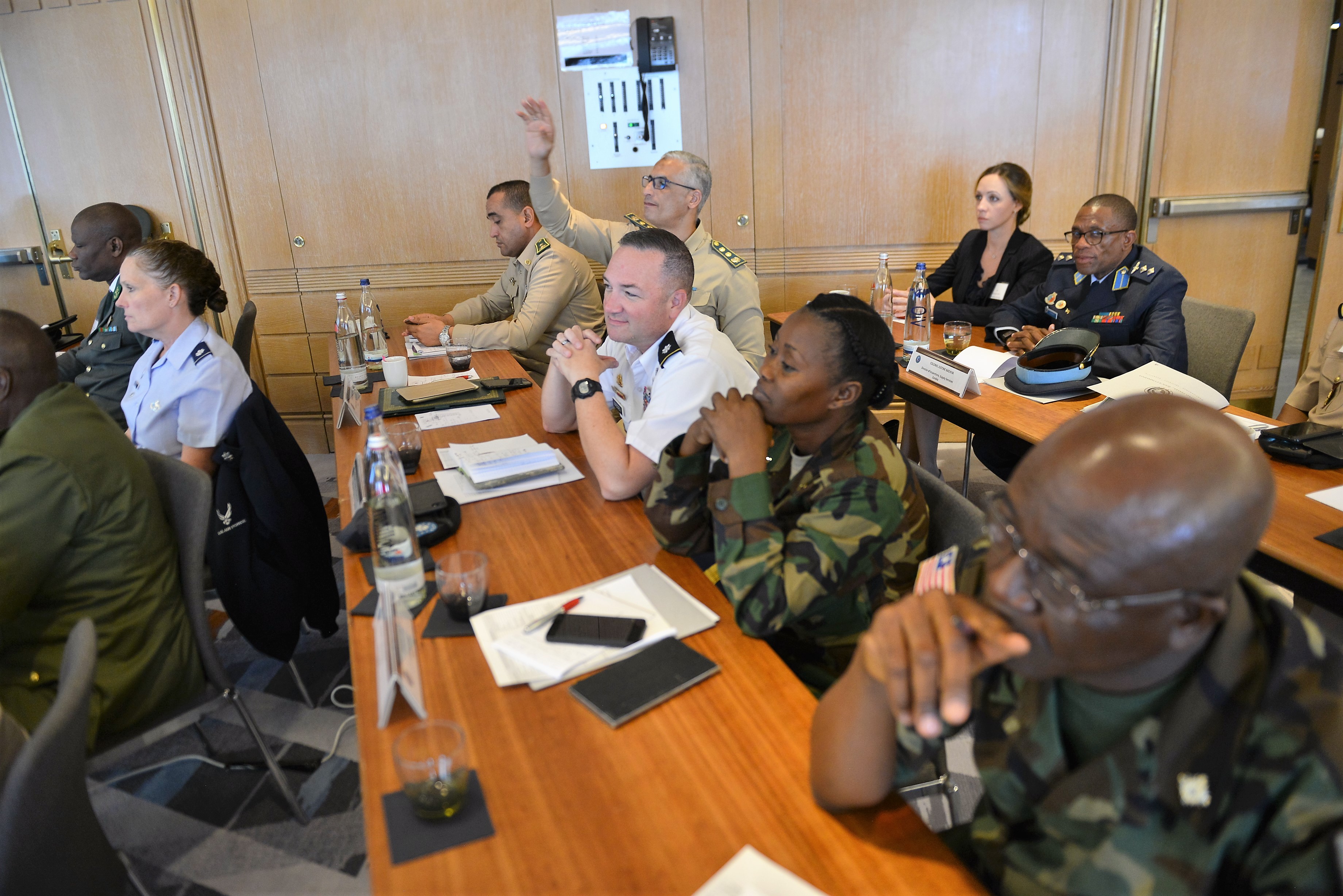 African partner representatives and attendees of the inaugural U.S. Africa Command Multilateral Logistic Seminar, engage in classroom discussions, Sept. 24, 2018. The seminar was held Sept. 24-28, 2018, at the Marriot Hotel Conference area, Sindelfingen, Germany.
