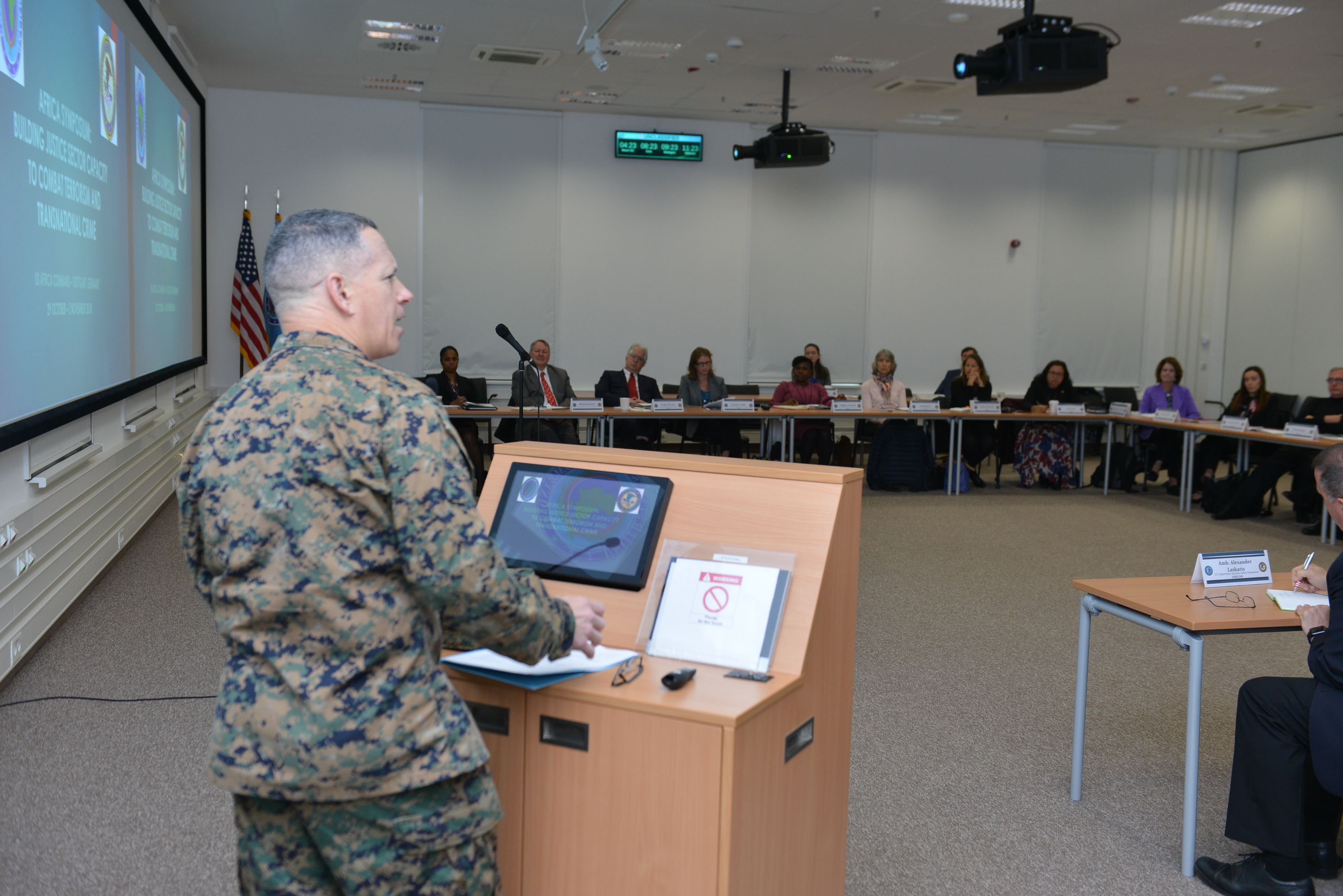 The event opened with remarks given by Ambassador Alexander Laskaris, the AFRICOM Deputy to the Commander for Civil-Military Engagement, who emphasized the importance of having legitimate governments and military forces in the eyes of the people.