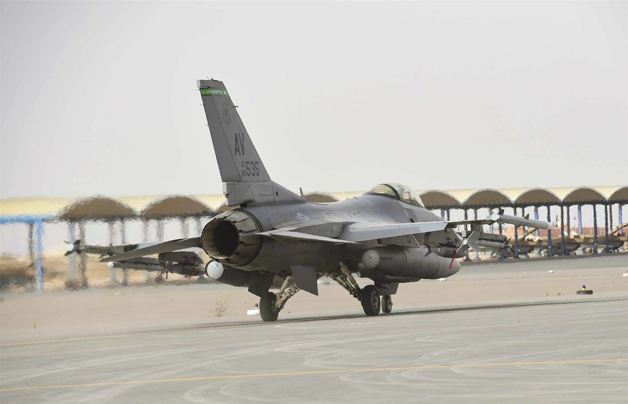 An F-16C Fighting Falcon from the 555th Expeditionary Fighter Squadron taxis during Exercise African Lion 2019, at Ben Guerir, Morocco, March 25, 2019. The exercise took place in the Kingdom of Morocco and was sponsored by U.S. Africa Command. African Lion 2019 is a Chairman of the Joint Chiefs of Staff-sponsored, U.S. Africa Command-scheduled, U.S. Marine Corps Forces Europe and Africa-led, joint and combined exercise conducted in the Kingdom of Morocco with a spoke in Tunisia, and armed forces participants in from Canada, France, Senegal, Spain, and the United Kingdom. (U.S. Air Force photo by Staff Sgt. Ceaira Tinsley)