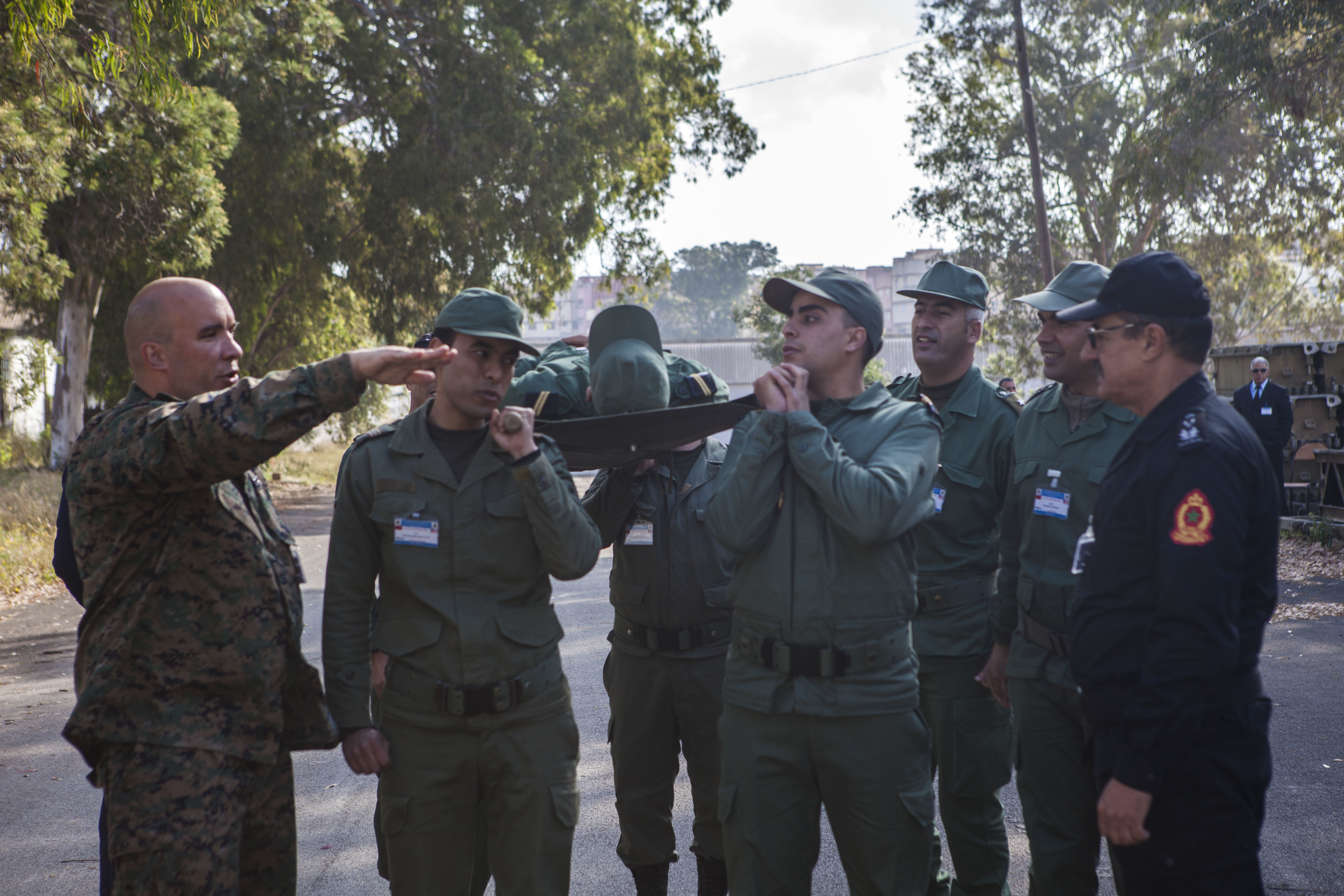 The HMA program is designed to assist allied and partner countries in reducing landmines and explosives that threaten civilian population, according to the U.S. State Department website. In order to further this effort in Morocco, U.S. Marine Corps explosive ordnance disposal technicians and a U.S. Navy corpsman trained alongside the Moroccan Royal Armed Forces for four weeks, instructing their Moroccan partners on proper ordnance disposal techniques and tactical combat casualty care.