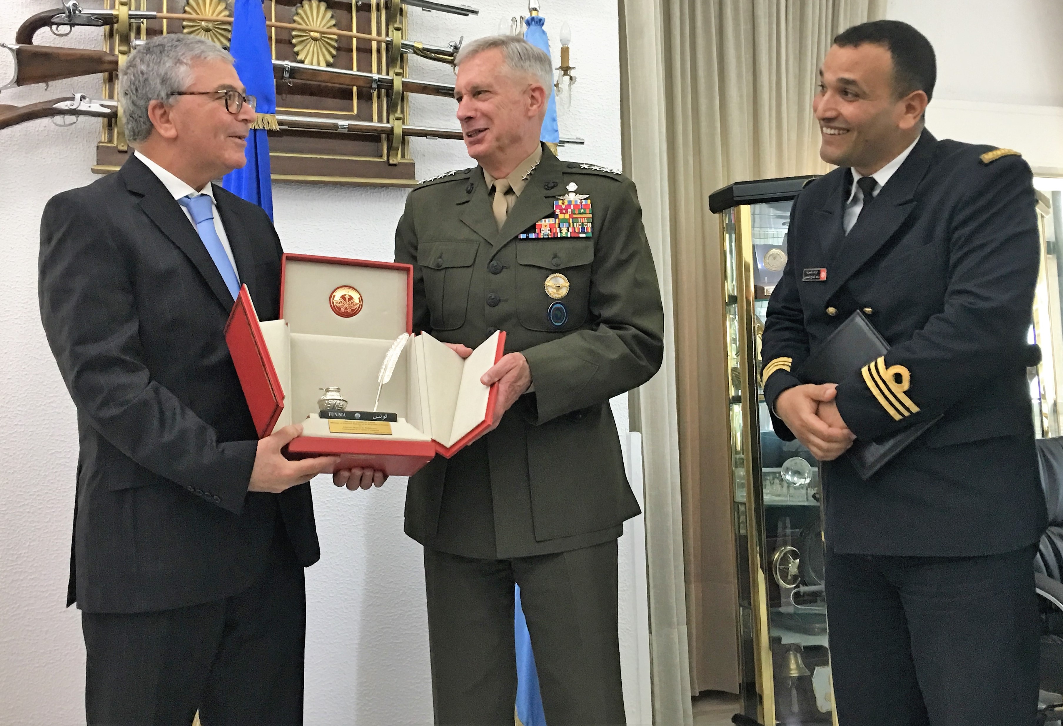 Marine Corps Gen. Thomas D. Waldhauser, commander, U.S. Africa Command, along with U.S. Ambassador to Tunisia Donald Blome, engaged with the Tunisian minister of defense and service chiefs in a wide-ranging discussion addressing AFRICOM’s role in the region as well as exploring common challenges and areas to partner in the future.