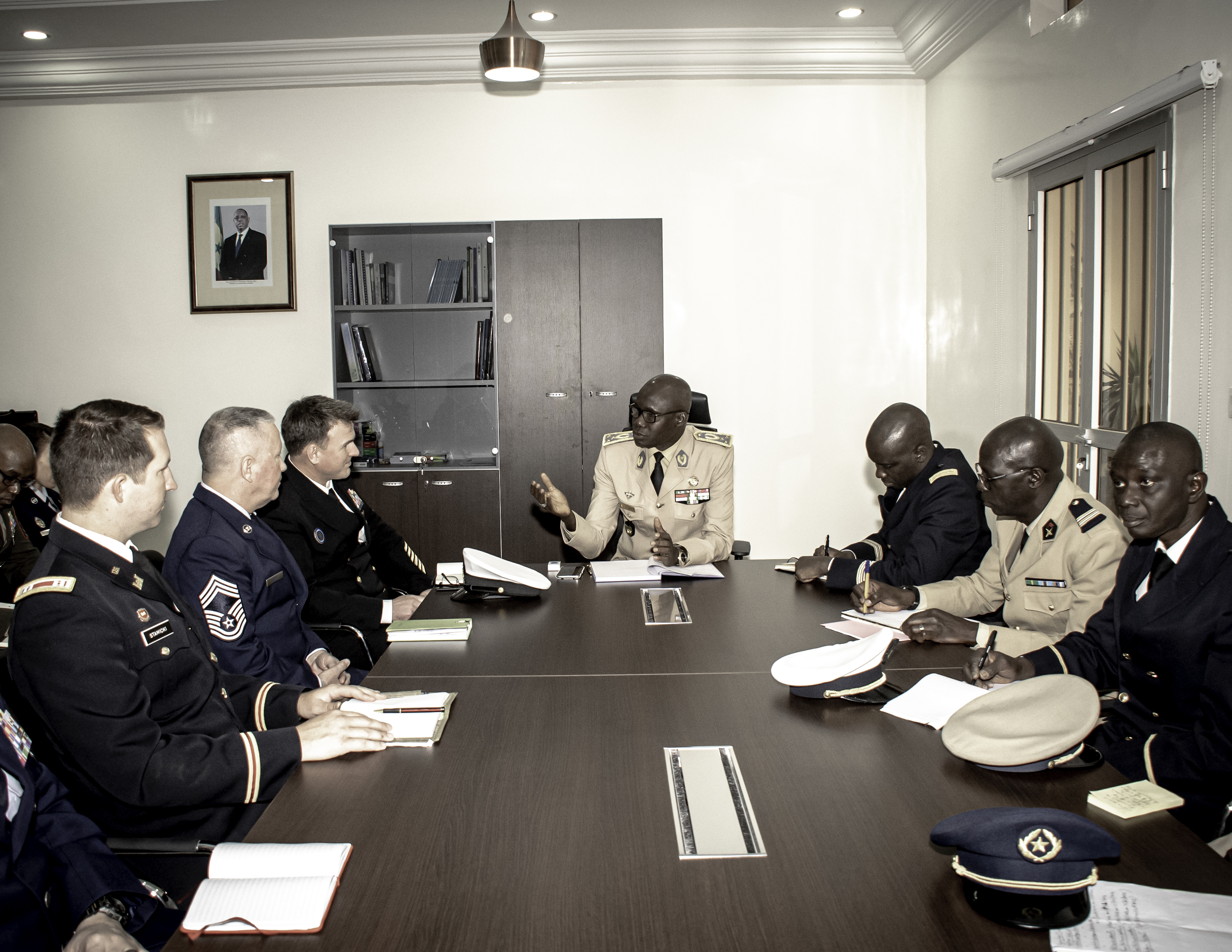 DAKAR, Senegal – U.S. Navy Command Master Chief Ryan P. Burton, U.S. Africa Command (AFRICOM) acting command senior enlisted leader, met with the Senegal Chief of Defense Lt. Gen. Birame Diop, his staff, and Senegalese command senior enlisted leaders Jan. 22-23, in Dakar City, Senegal.