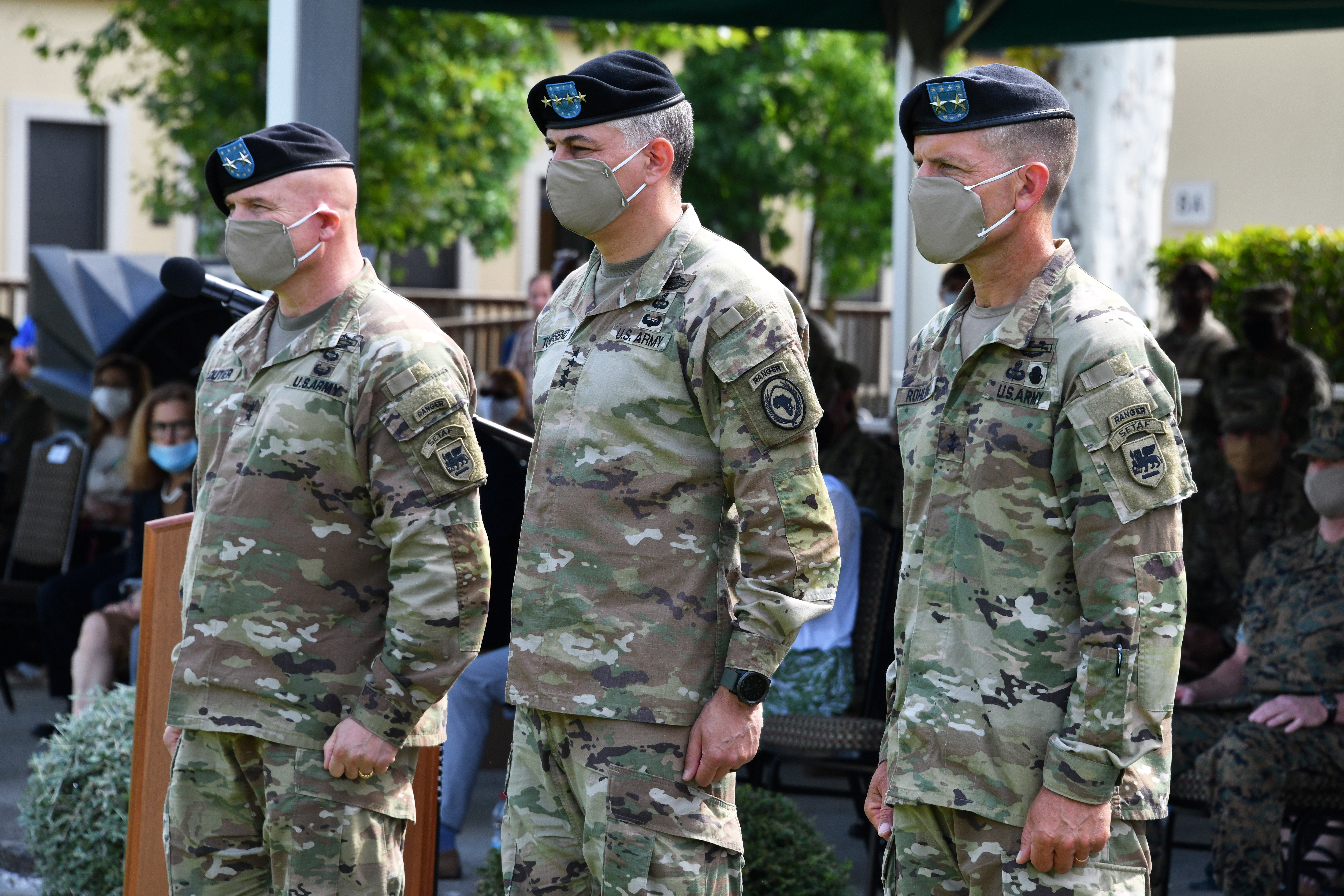 Army Gen. Stephen Townsend, commander, U.S. Africa Command, officiated at the COVID-19 protective measure compliant ceremony, which was attended by invited guests, as well as an online audience of U.S. Army Africa and Vicenza military community service members, civilian employees, and partners from the Italian military and civilian communities.