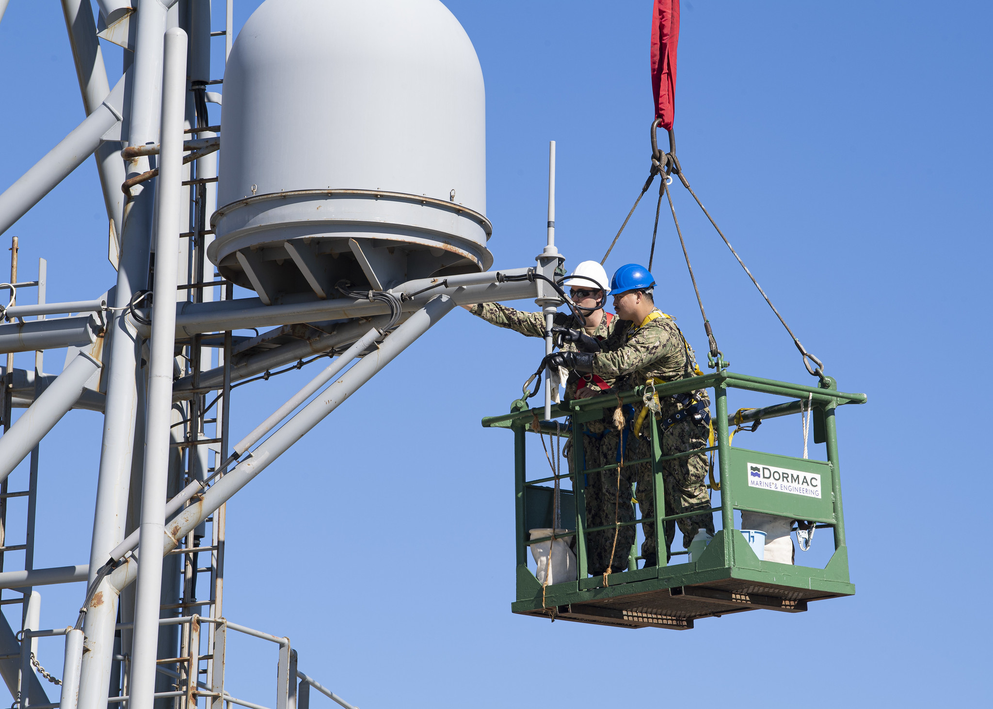 During the scheduled port visit, Hershel “Woody” Williams completed a 14-day maintenance period in Cape Town’s cruise terminal. The ship received preventative and preservative repairs to the flight deck safety nets, mission deck, freeboard and superstructure, as well as the insulation and lighting fixtures.