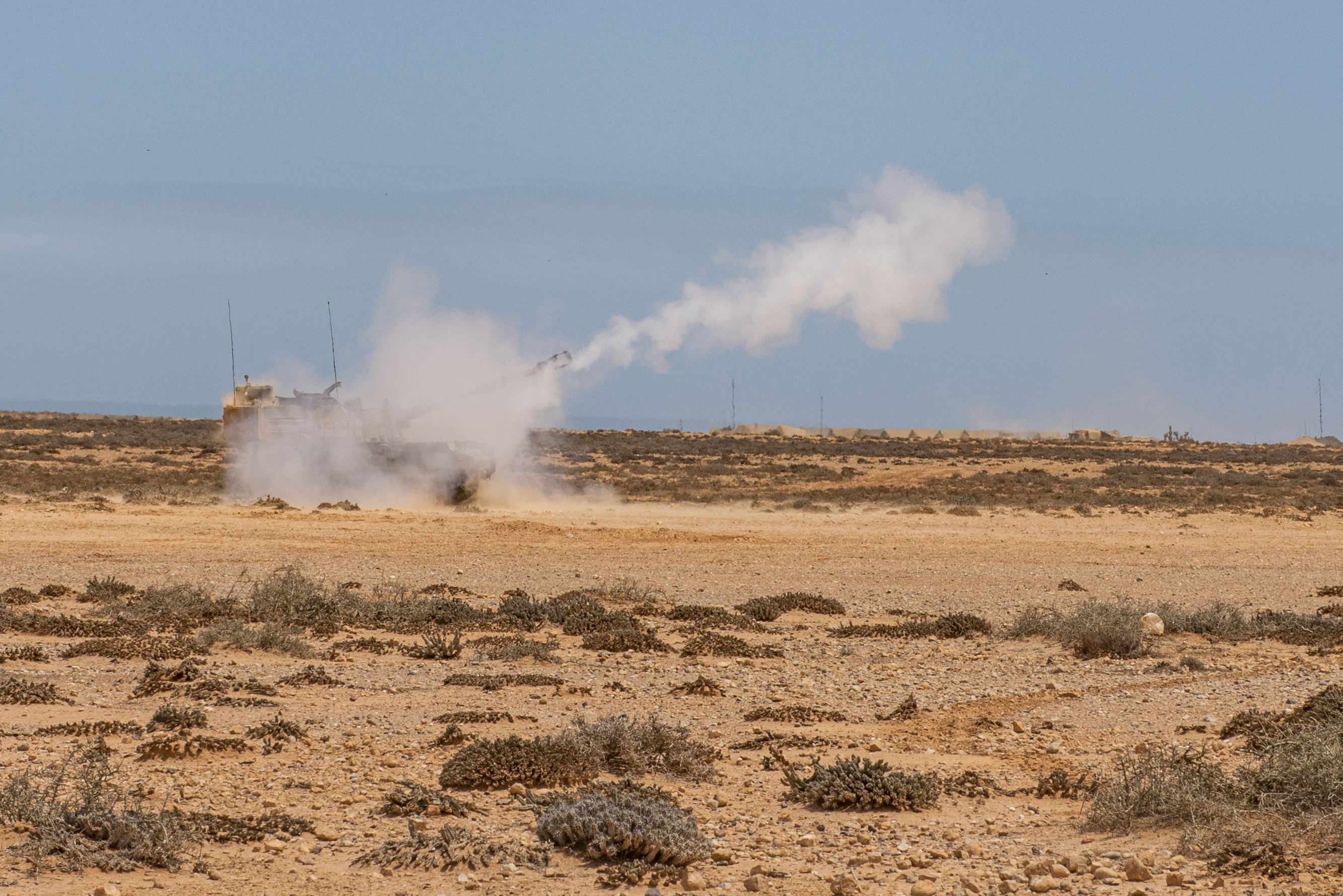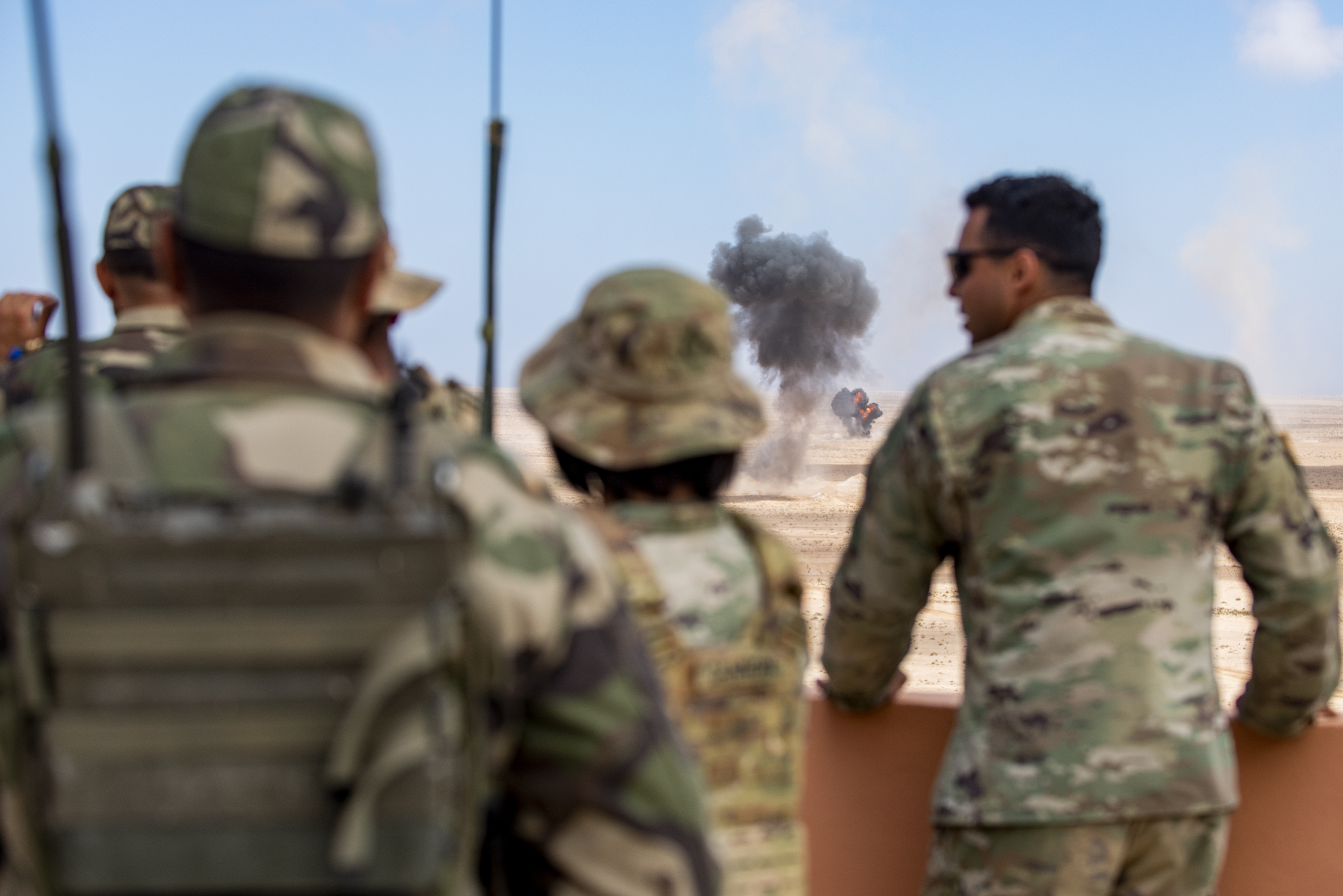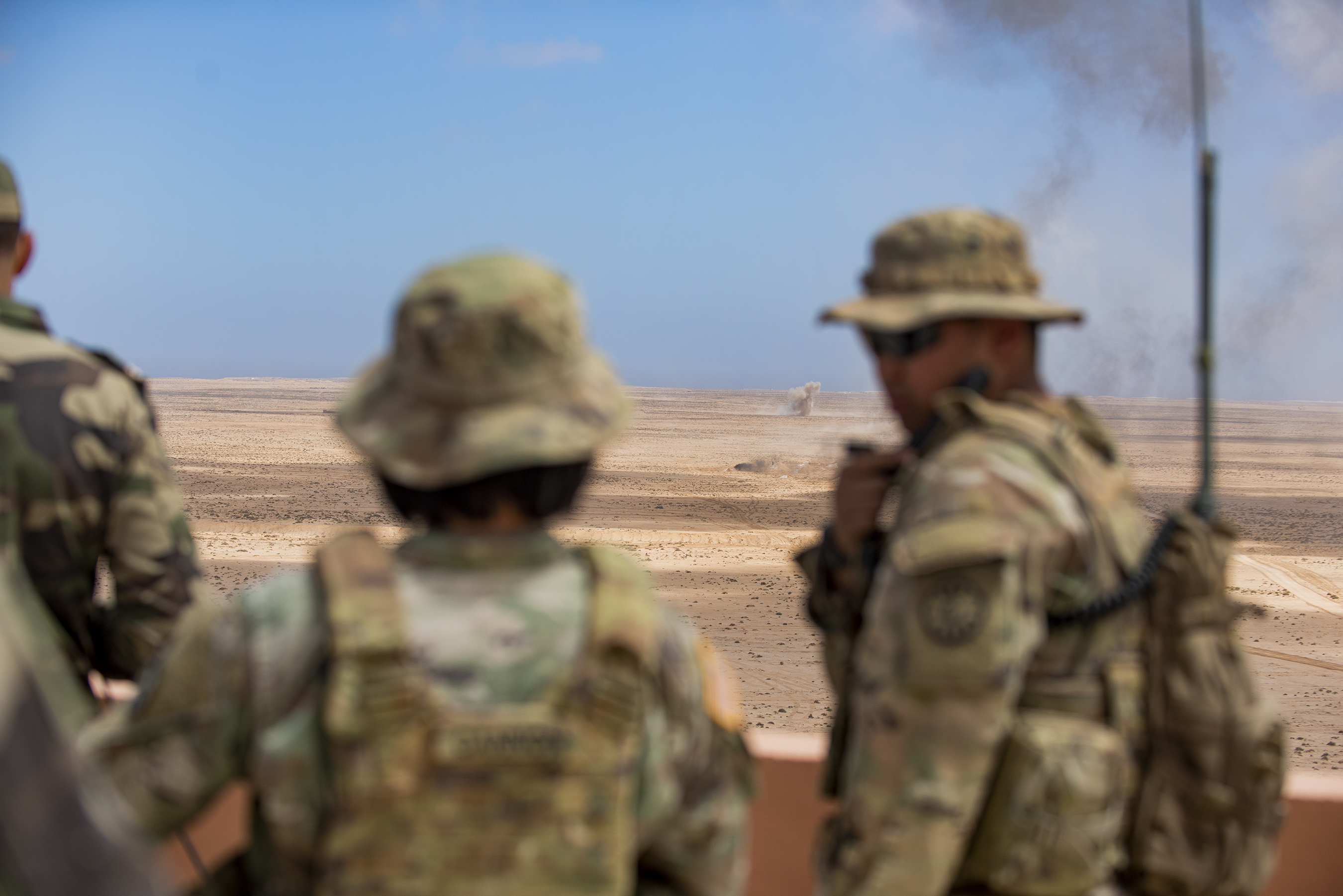 During the exercise, the battalion provided ground support with preparatory and destructive fires and obscuration using white smoke fires. At the end of the two-week training, the Idaho National Guard and the counterpart states will conduct the combined arms live-fire mission with Moroccan forces.