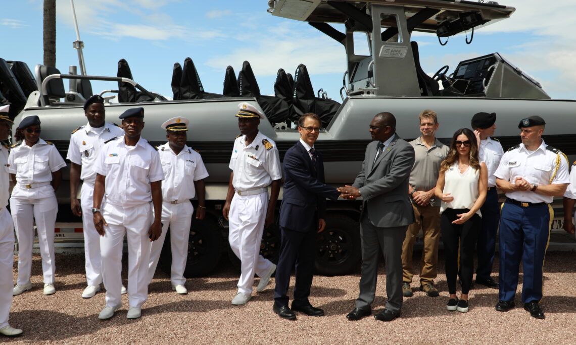 As part of ongoing security cooperation between the United States and Mozambique, the U.S. Government provided a 10-meter coastal patrol boat to the Mozambican Navy during a ceremony Dec. 7, 2022. In addition to the boat, Mozambican Navy officials will participate in training offered by the U.S.-based manufacturer, SAFE Boat International.
