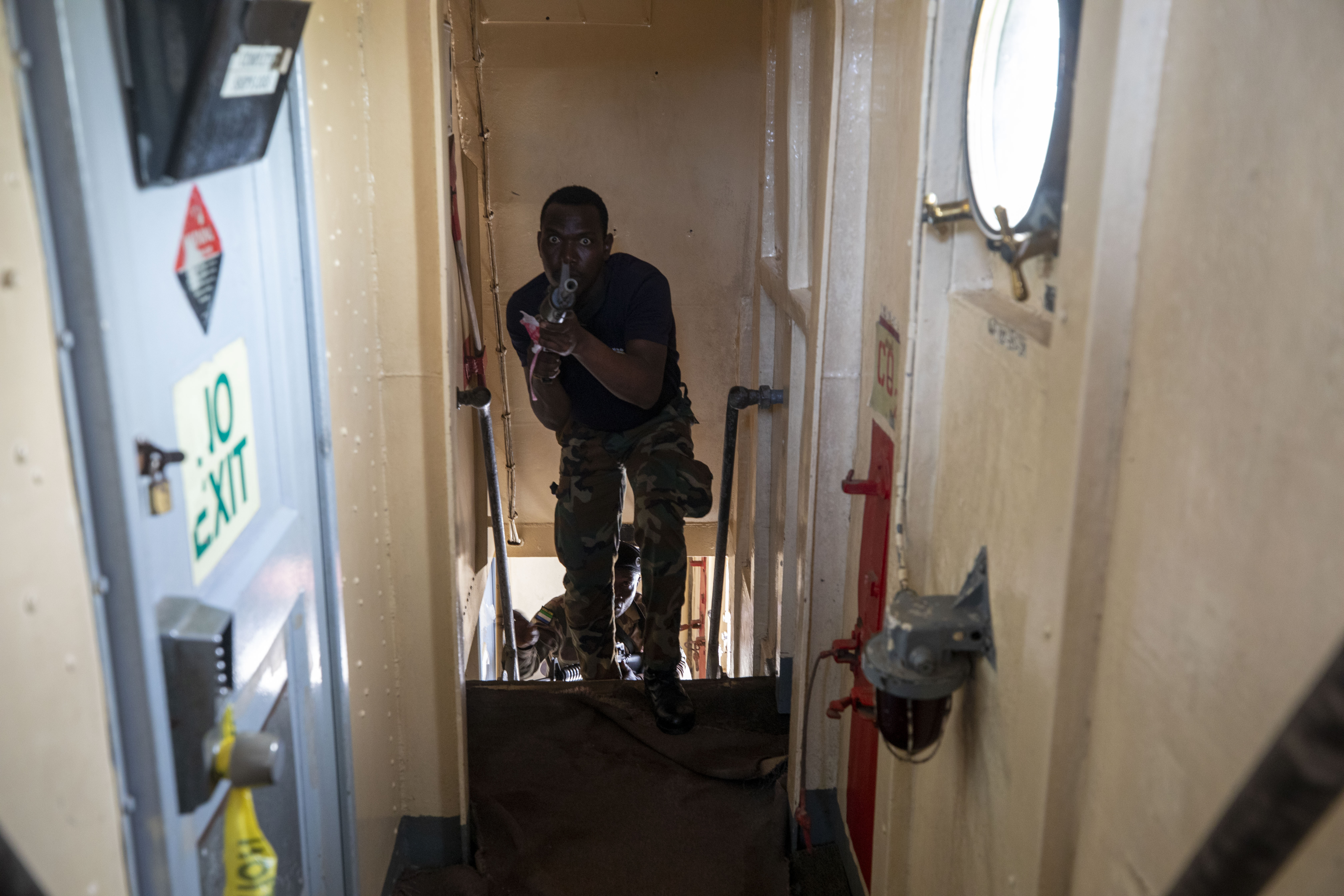 On the final day of instruction, students once again embarked aboard Ghana Navy ships and small boats to apply all that they had learned, including boarding techniques and small boat helmsmanship. Together, the militaries meshed and worked alongside one another to complete each of the tasks, often communicating with hand signals to break the language barrier.