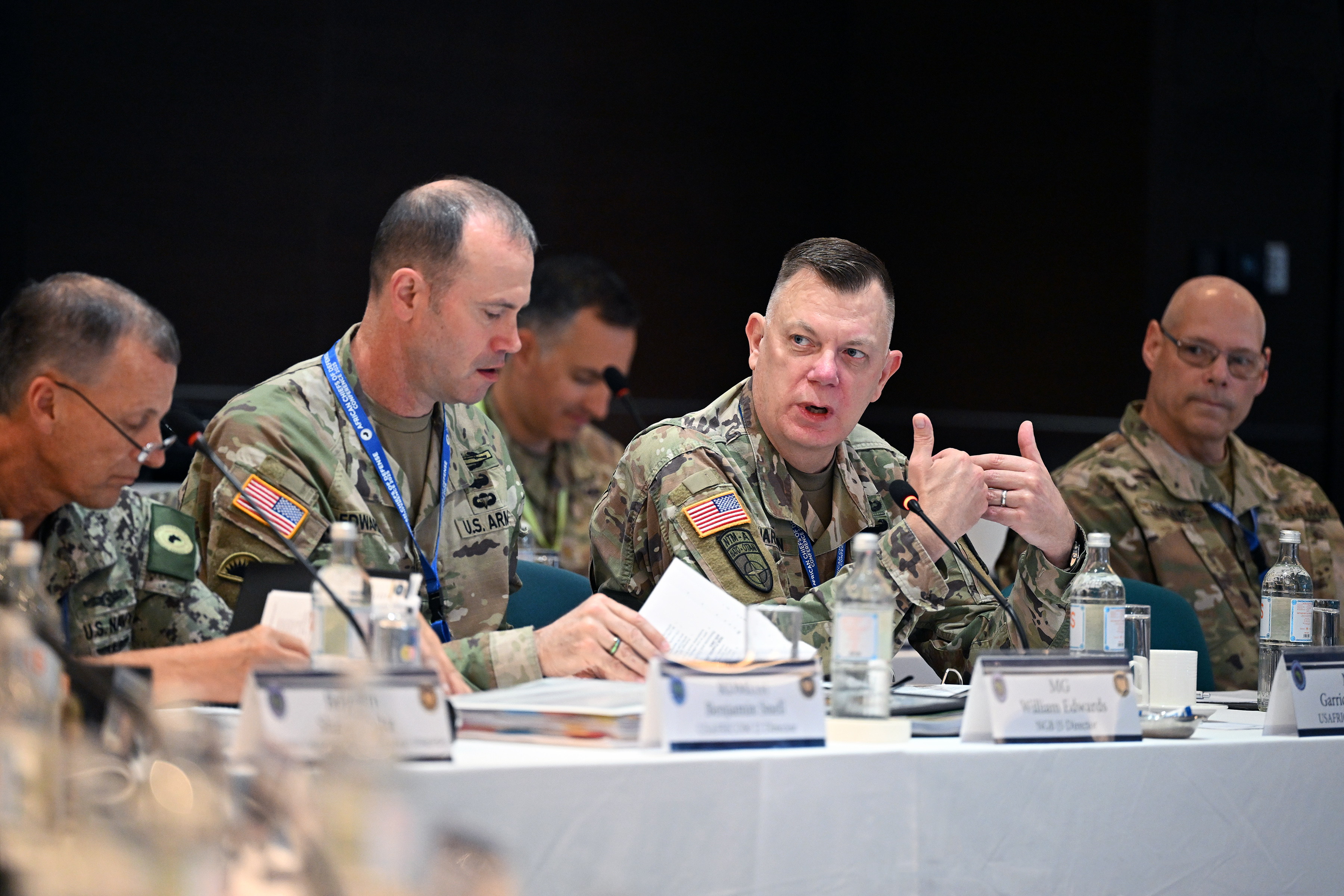 Maj. Gen. Garrick Harmon, Director, Strategy, Engagement, and Programs, U.S. Africa Command, speaks at the State Partnership Program (SPP) Adjutant Generals Conference in Nairobi, Kenya May 27, 2025. The SPP Adjutant General Conference unites National Guard Bureau leaders and Adjutant Generals from AFRICOM partner states aligning state-level partnerships with combatant command strategies and solutions to shared challenges across Africa, underscoring the SPP's role in advancing defense objectives and promoting broader military-to-military cooperation.