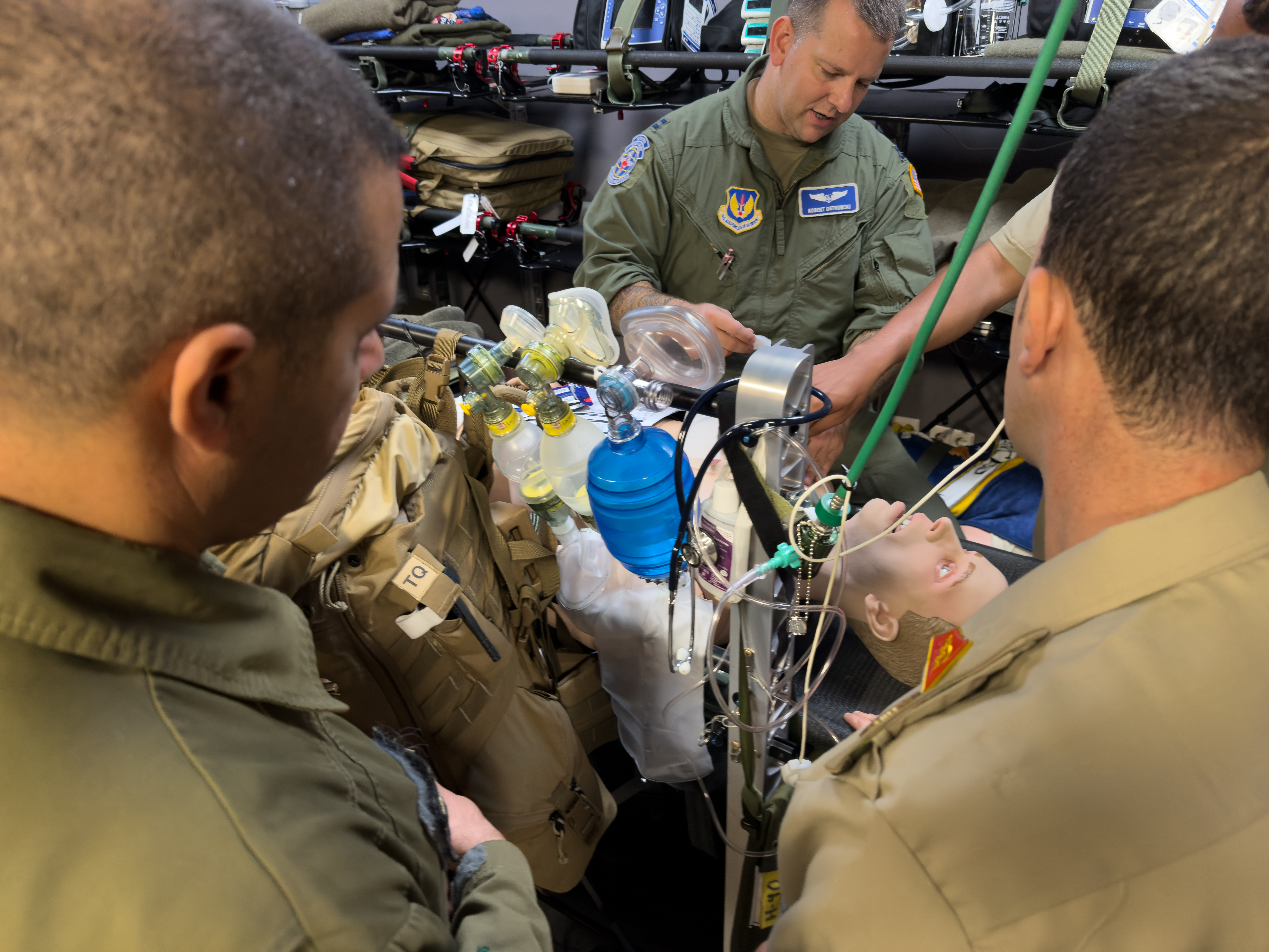 • Static aircraft familiarization, involving hands-on training aboard a static C-130 Hercules to enhance understanding of patient loading procedures and in-flight care techniques