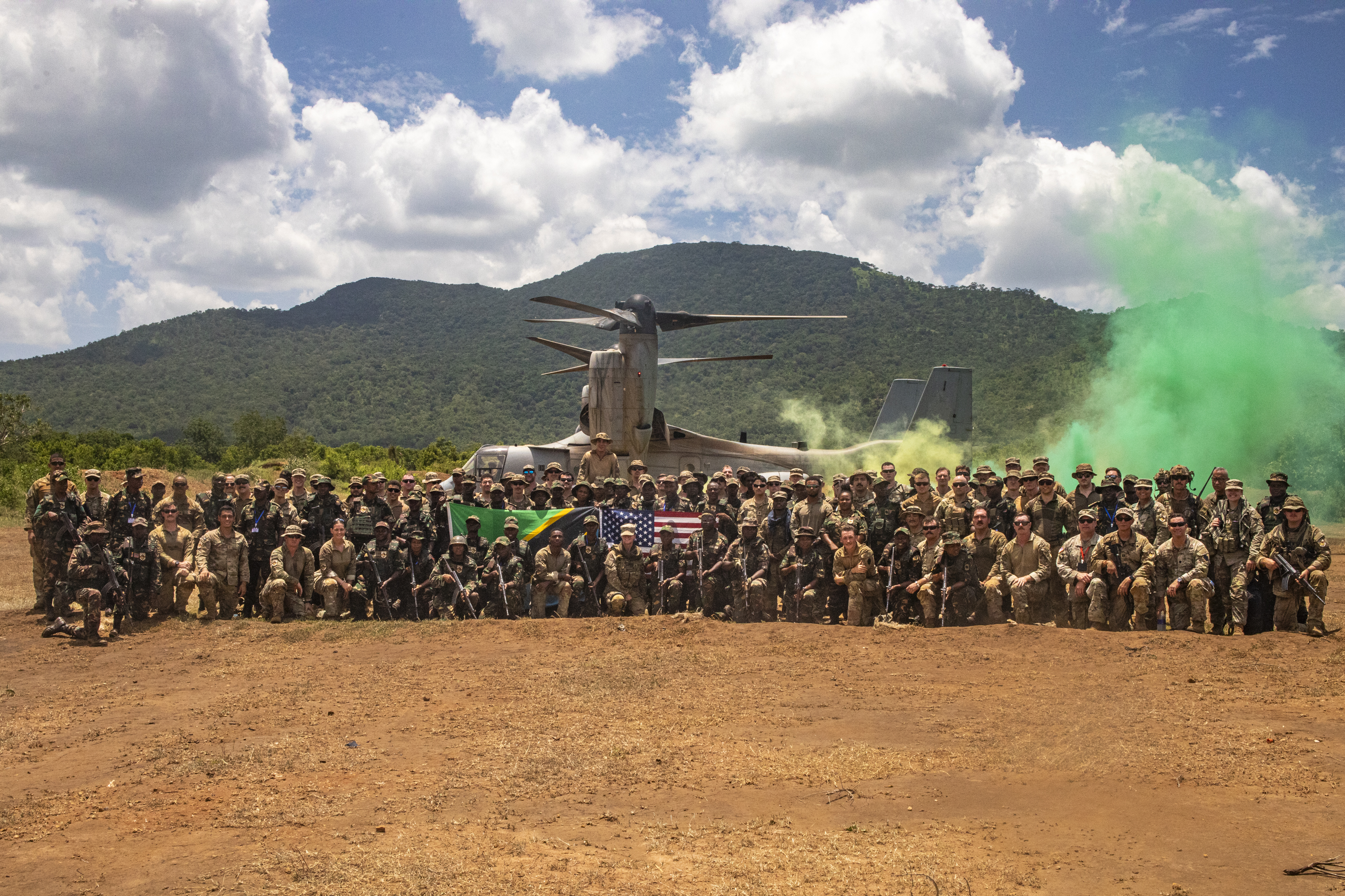 U.S. Army soldiers with the East Africa Response Force (EARF), assigned to Combined Joint Task Force – Horn of Africa (CJTF-HOA), join U.S. Army Southern European Task Force, Africa (SETAF-AF) and the Tanzania People’s Defense Force (TPDF) for a group photo, culminating their field training exercise and concluding exercise Justified Accord (JA25), Feb. 15, 2025 at the Masata Military Training Base in Msata, Tanzania. The exercise JA25, is the premier U.S. Africa Command (USAFRICOM) exercise in East Africa, designed to enhance multinational combat readiness, strengthen crisis response capabilities and empower allies and partners in the region. Led by U.S. Army Southern European Task Force, Africa (SETAF-AF) and hosted in Kenya, Djibouti and Tanzania, JA25 integrates high-intensity training scenarios that sharpen warfighting skills, increase operational reach and enhance the ability to execute complex joint and multinational operations. The exercise runs from Feb. 10–21, 2025. (U.S. Army photo by Sgt. Michael Knight)