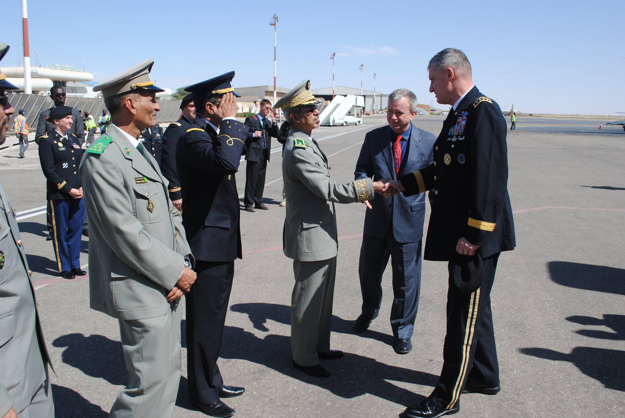 The commander of the United States Africa Command General David M. Rodriguez was welcomed by General Hanana Sidi, Mauritania’s Deputy Chief of the Army and Colonel Mohamed Lehretani, Chief of the Mauritanian Air Force during a visit to Mauritania.