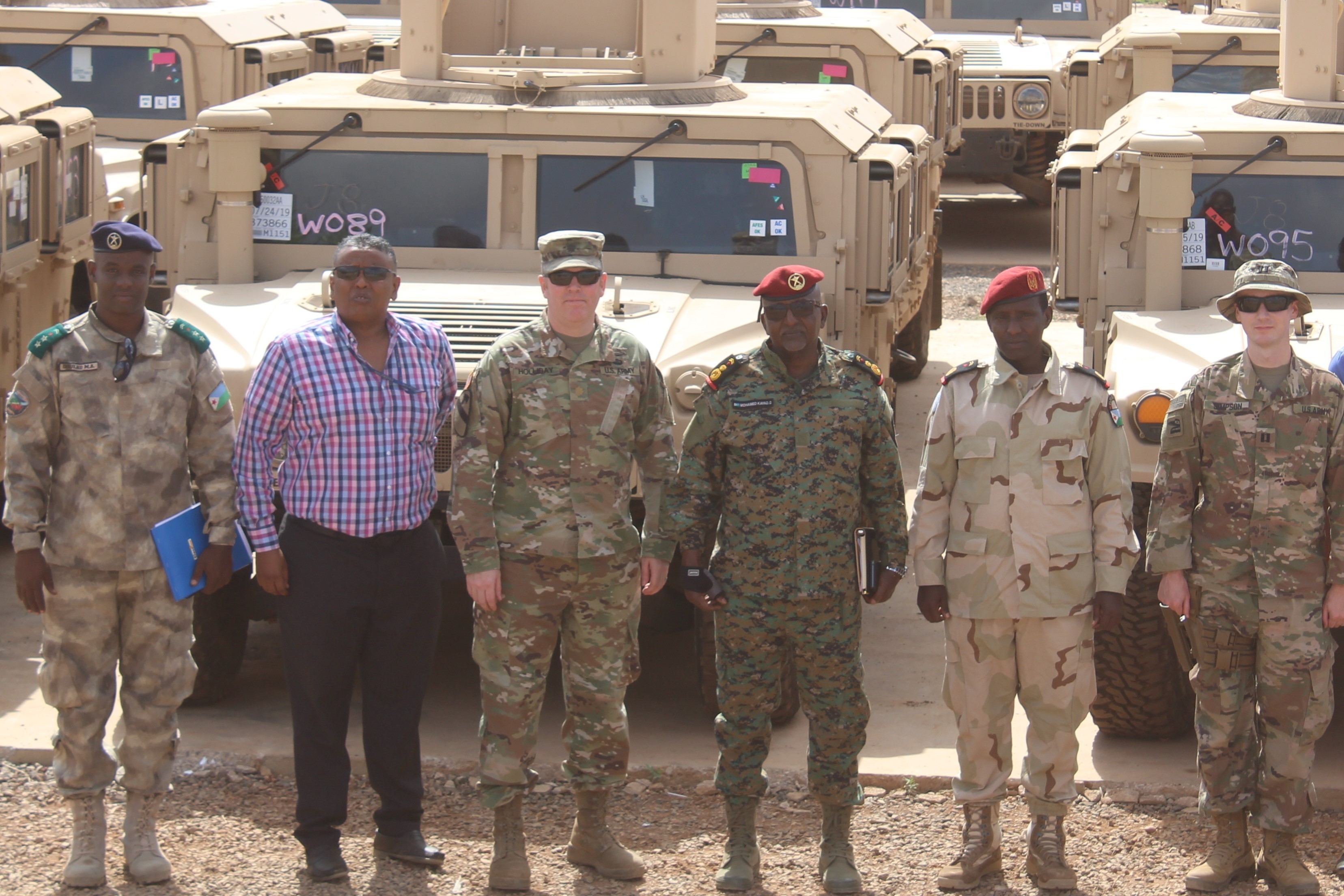 Right to Left: Djiboutian Lt. Goulad, Djiboutian Armed Forces (FAD) logistics, a representative from the US Embassy, U.S. Army Maj. Jonathan Holliday, Djiboutian Lt. Col. Mohamed Kayad, FAD logistics, Djiboutian Maj. Mohamed Assoweh, Rapid Intervention Battalion commander, U.S. Army Capt. Michael Simpson, Combined Joint Task Force-Horn of Africa. Courtesy Photo