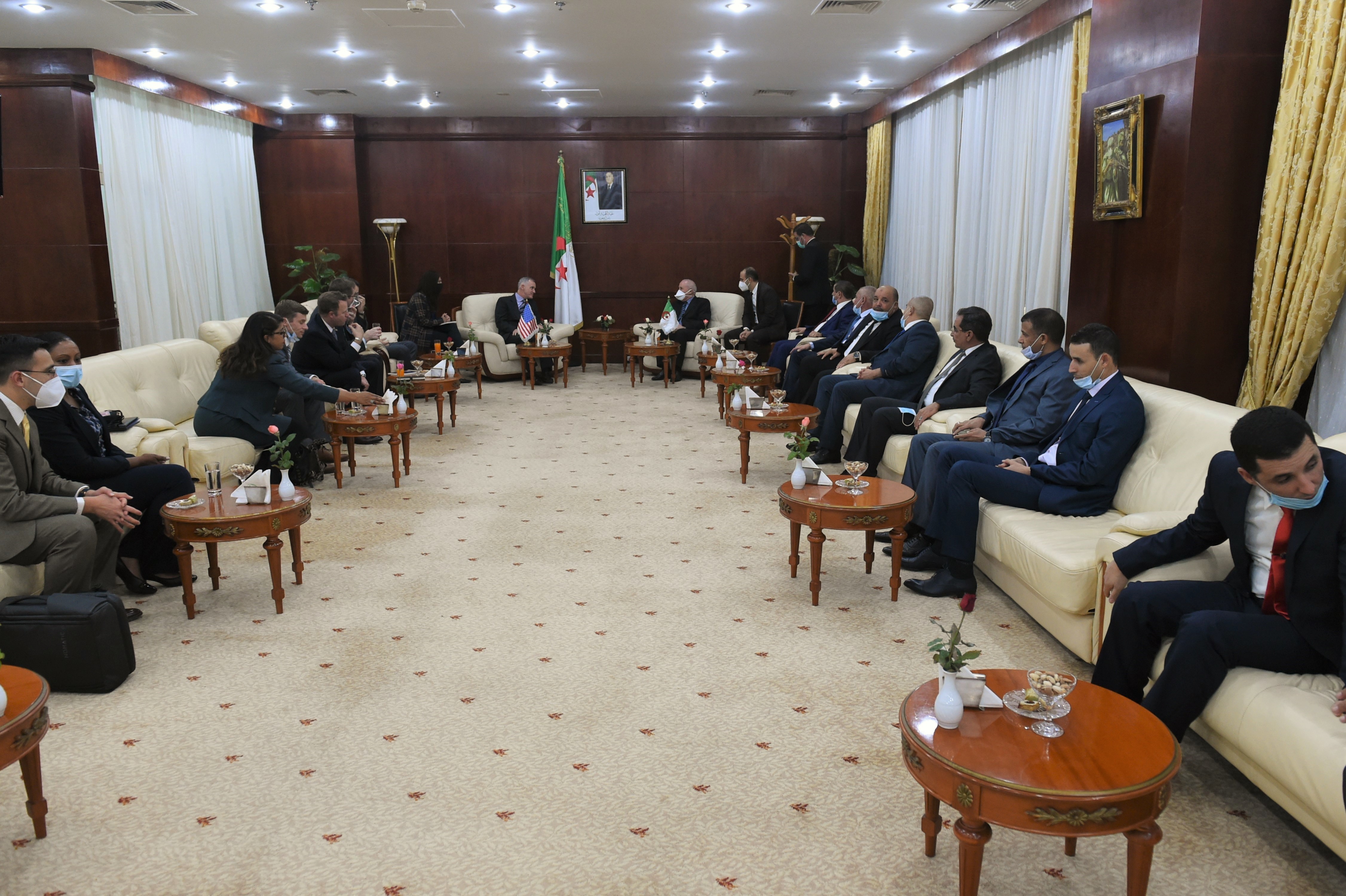 Rear Adm. Michael Baze, director of maritime headquarters, U.S. Naval Forces Africa, meets with the Commander of Algerian Naval Forces and the Director of Naval Cooperation Oct. 18, 2020. The visit is the latest in a series of engagements with Algeria, including Oct. 1 by Secretary of Defense Mark Esper, and Sept. 23 by Gen. Stephen Townsend, commander, U.S. Africa Command.