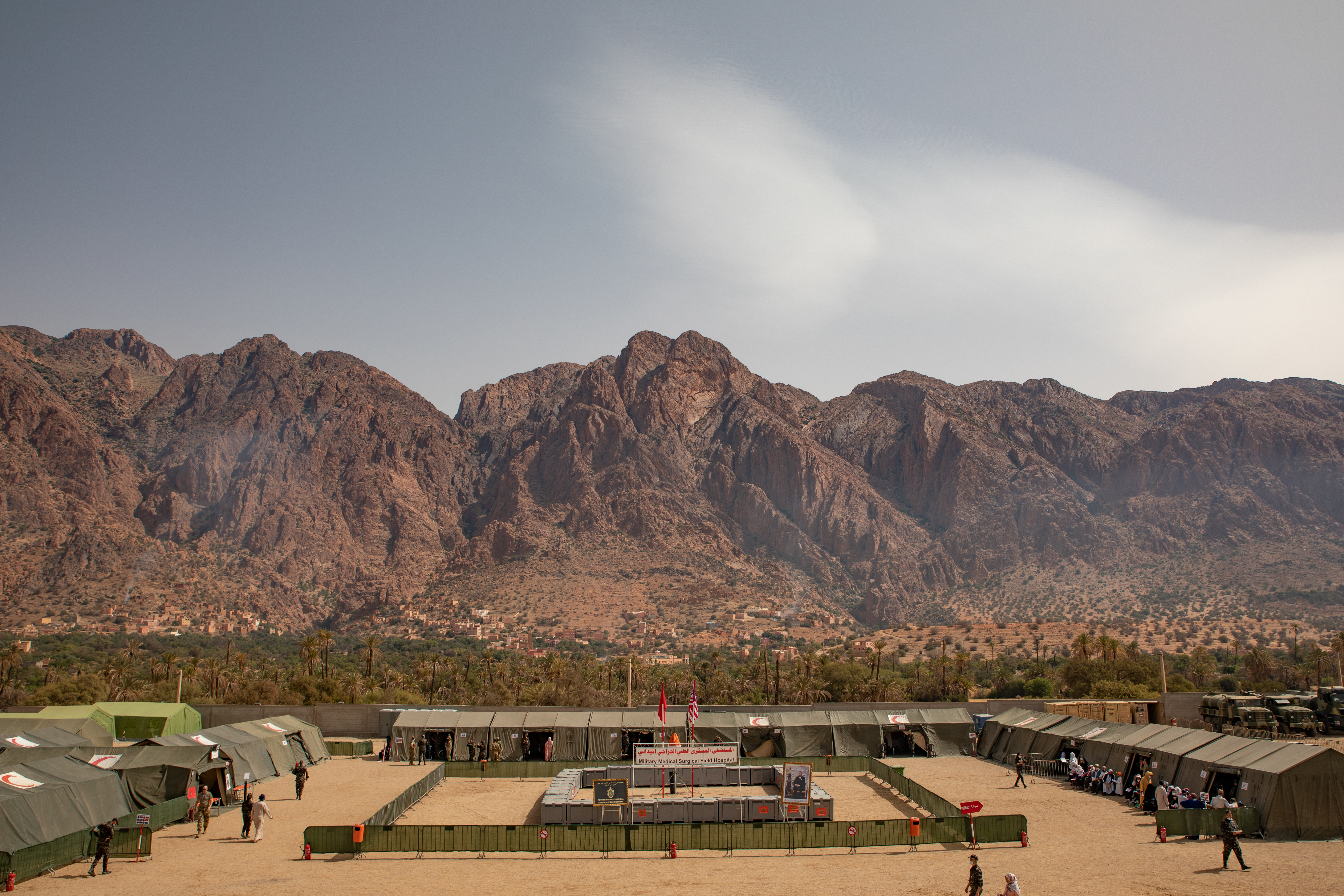 U.S. and Moroccan service members provide medical care to Moroccan citizens at the Military Medical Surgical Field Hospital in Tafraoute, Morocco, during the humanitarian civic assistance portion of African Lion 21.