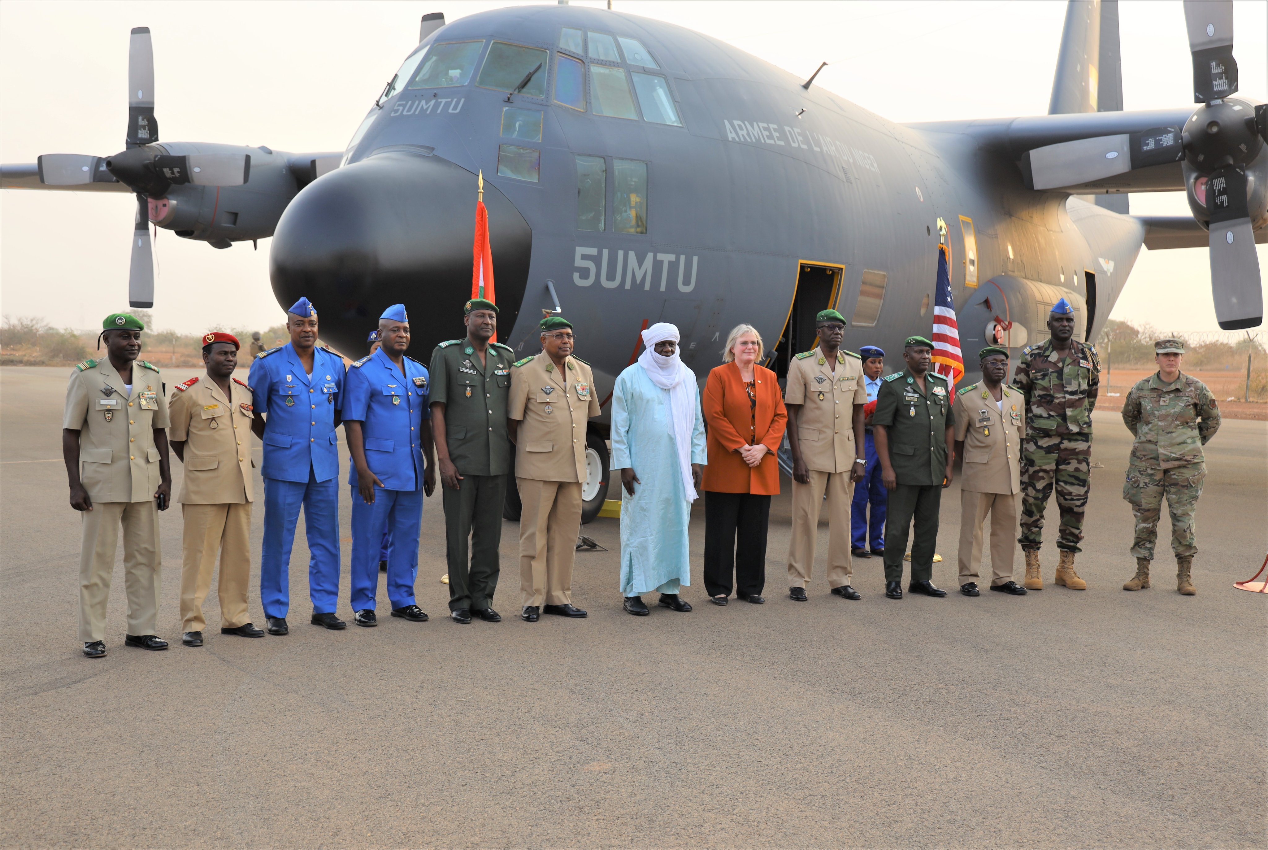 U.S. Embassy in Niger personnel and members of the Nigerien Armed Forces oversaw the transfer of a C-130 Hercules aircraft to the Nigerien Air Force during a handover ceremony at Air Base 101 in Niamey, Niger, on Jan. 4, 2023.