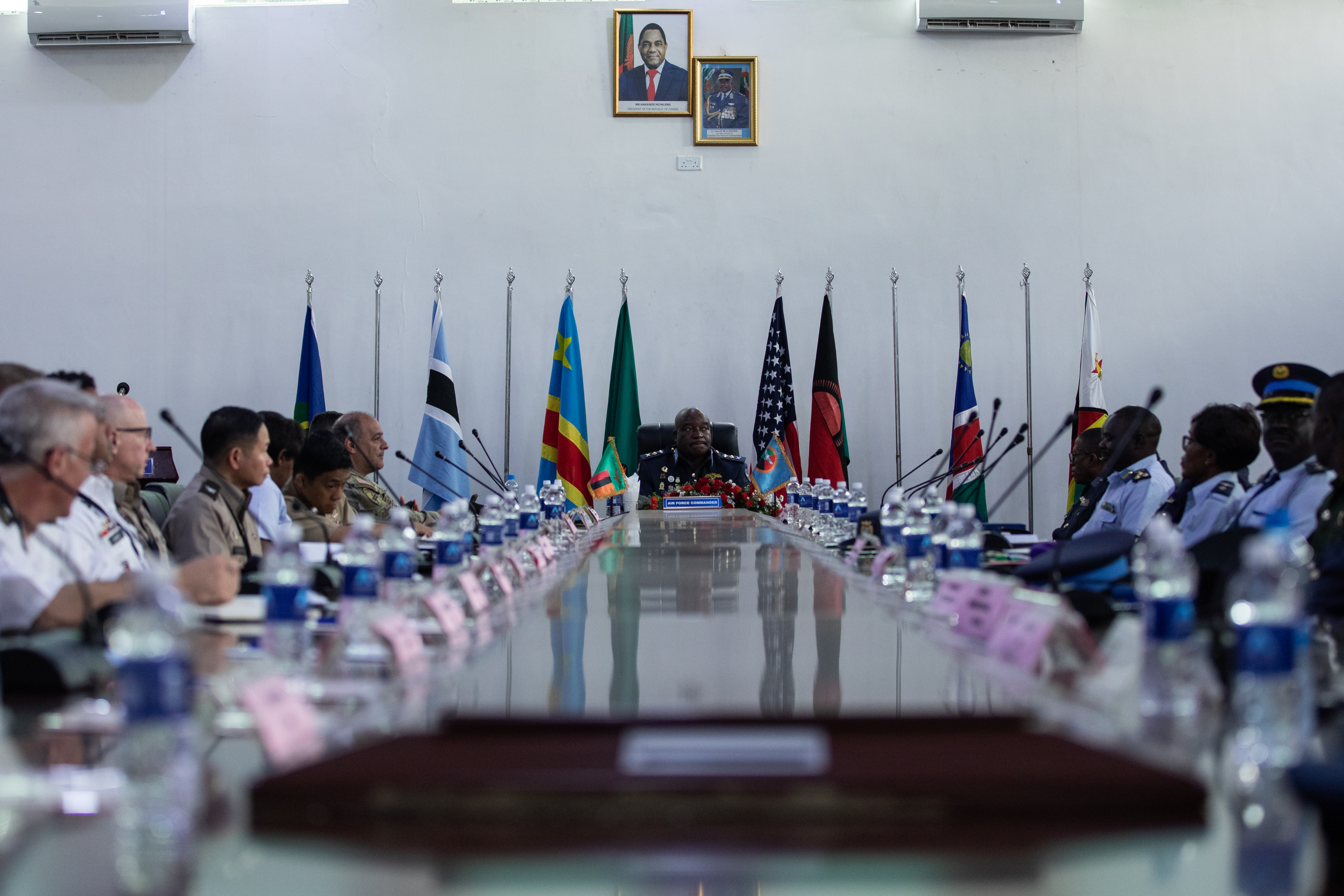 Zambian Air Force Commander, Lieutenant General Nyone speaks to the group of military chaplains from around southern African and the United States in Lusaka, Zambia, April 8, 2024. The Zambian Defence Force invited U.S. military chaplains from the U.S. Africa Command, U.S. Army Southern European Task Force, Africa (SETAF-AF), U.S. Air Forces Africa (AFAF), North Carolina and New York Army National Guards to participate in a five-day Southern African Development Community event in Lusaka, Zambia. The workshop aimed to enhance spiritual readiness for military personnel and their families, sharing best practices, and deepening relations with chaplains from Zambia, Botswana, Malawi, Namibia, and Democratic Republic of the Congo, marking a milestone in international cooperation and understanding. (U.S. Army photo by Spc. Ebony Neal)