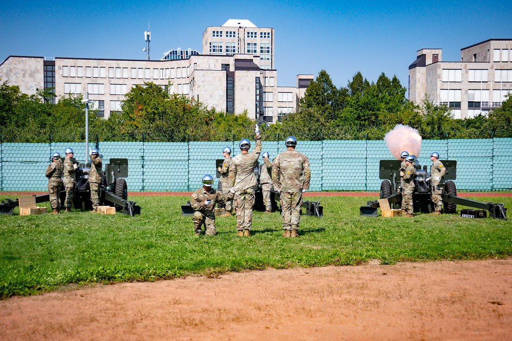 United States Army Garrison Stuttgart Military Police fire a salute battery during the U.S. Africa Command Change of Command ceremony on Kelley Barracks on Stuttgart, Germany on August 15, 2025. The ceremony marked a formal transition of leadership for U.S. Africa Command, which oversees U.S. military operations and partnerships across the African continent. AFRICOM is one of seven U.S. geographic combatant commands, responsible for military engagement across 53 African countries. Working with partners and allies, the command counters malign actors and transnational threats, responds to crises, strengthens African security forces, and supports U.S. government efforts in Africa to advance U.S. national interests and promote regional security, stability, and prosperity. (U.S. AFRICOM photo by Staff Sgt. Emely Eckels)