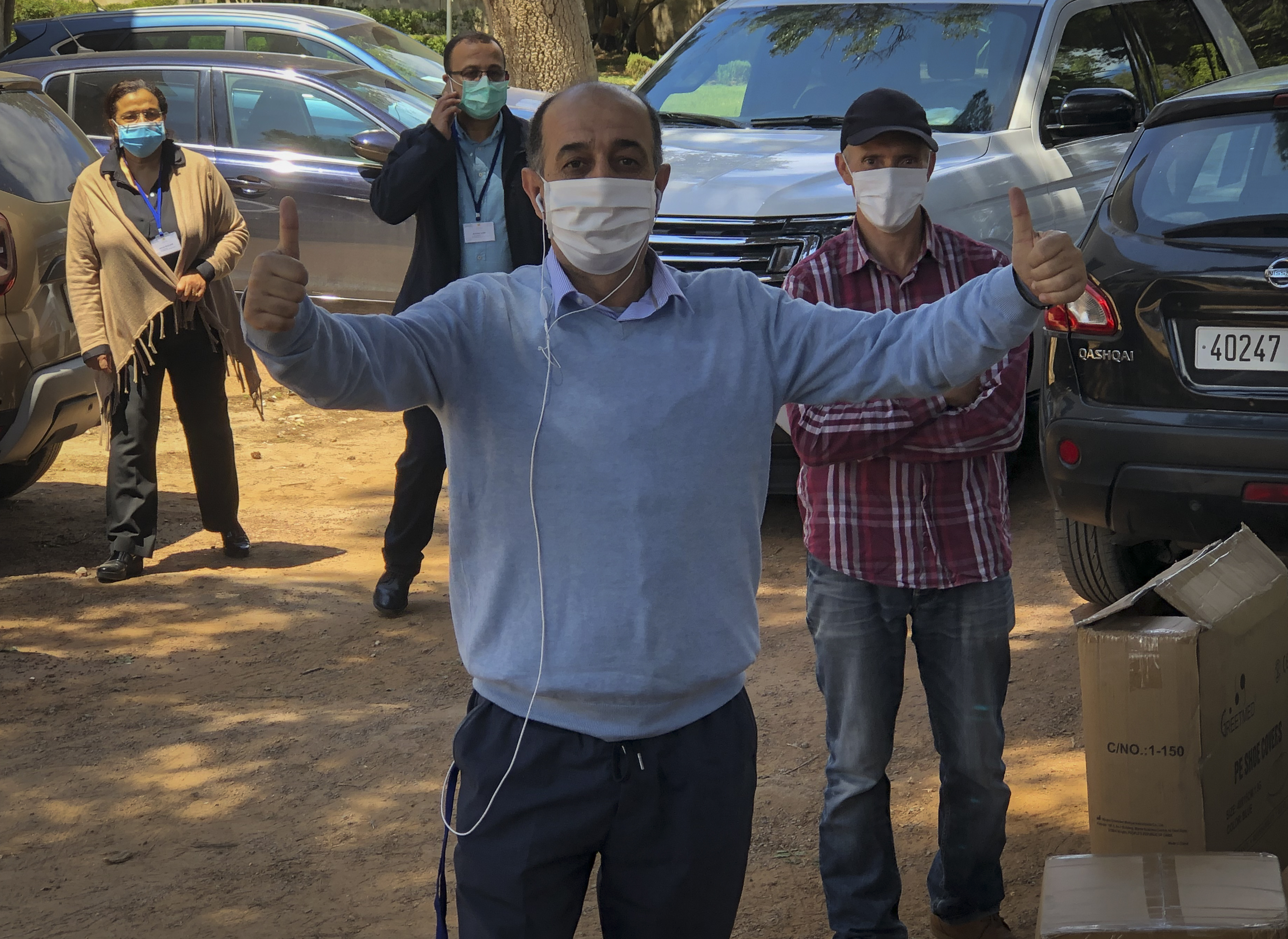 The U.S. Mission to Morocco transferred a supply of personal protective equipment to laboratory technicians at the National Institute of Health and Hygiene in Rabat, Morocco. The equipment goes directly to safeguarding the lives of Morocco's healthcare workers on the frontlines in the fight against the novel coronavirus, helping them to continue testing and screening for COVID-19 with sufficient protections in place. (Photo courtesy of U.S. Embassy Morocco)