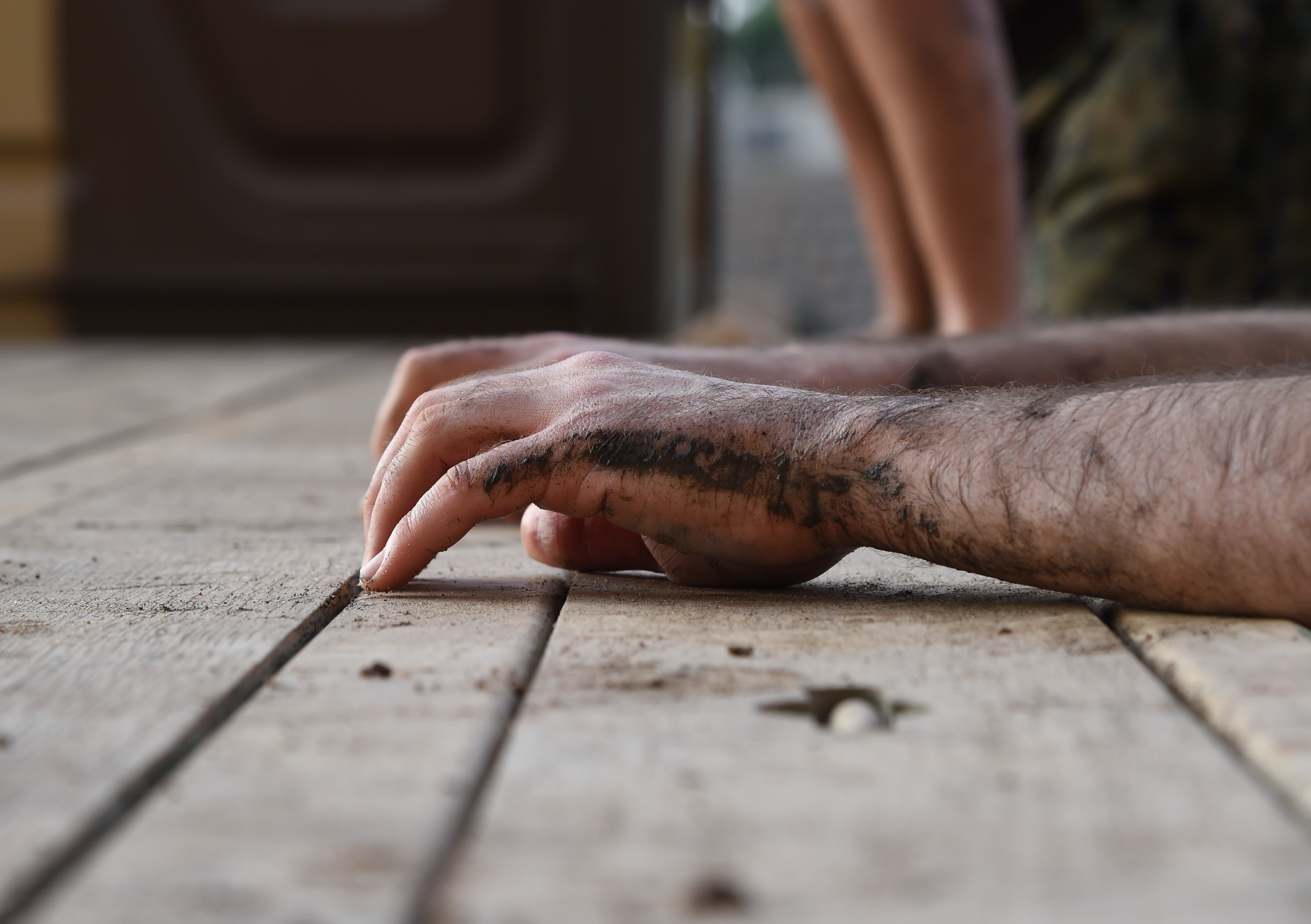 U.S. Army Cpt. Ermes Natale, Combined Joint Task Force-Horn of Africa Civil Affairs, rests his arms atop an obstacle during a mud run hosted by the French military, Nov. 6, 2016, in Djibouti, Djibouti. The event allowed coalition forces from French, Japanese, and American teams to interact and build camaraderie while navigating a five kilometer course. The French 5th Marine Regiment team took first place. (U.S. Air Force photo by Staff Sgt. Penny Snoozy)