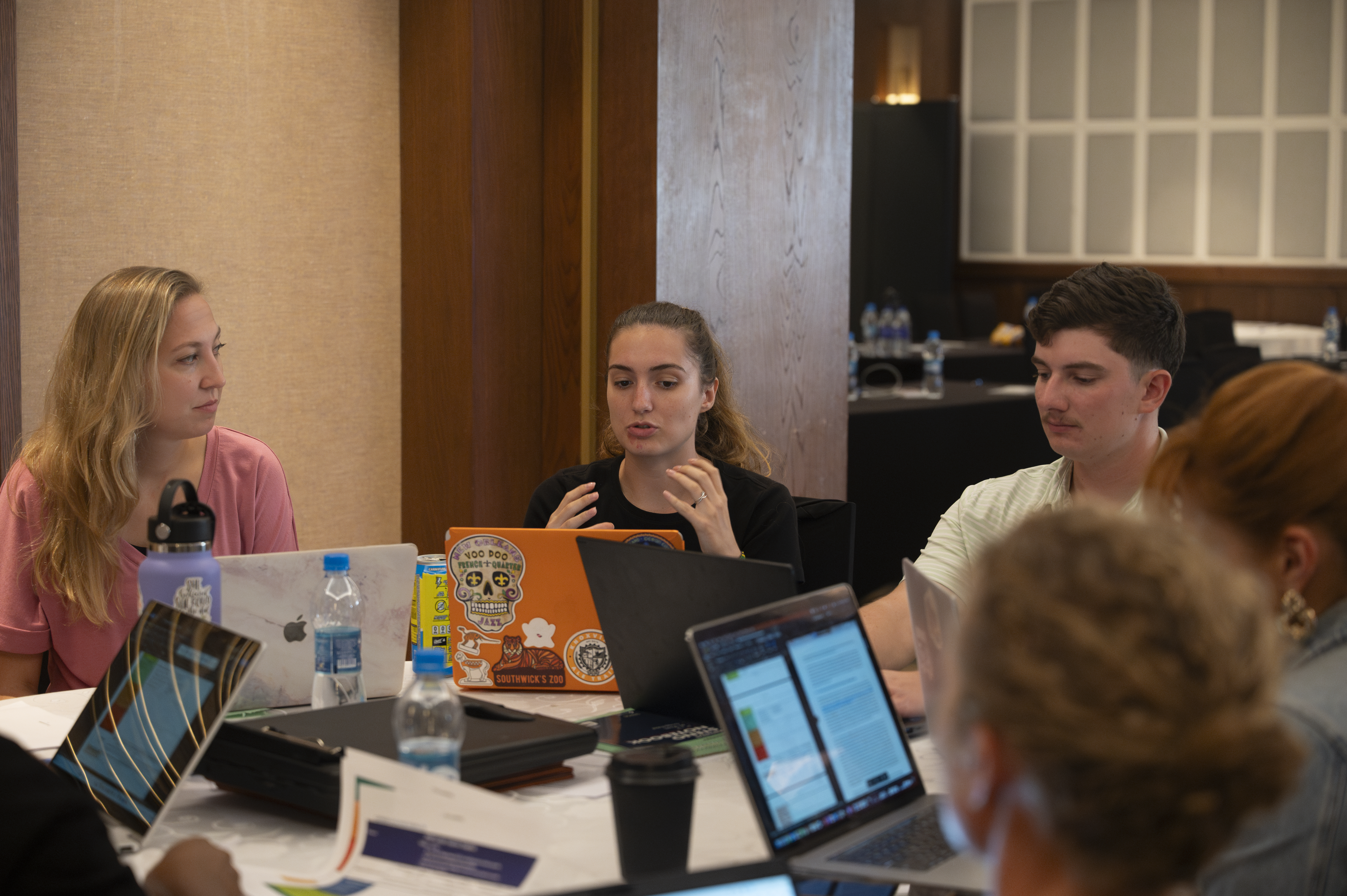 U.S. service members from the Women, Peace, and Security level 100 course engage in breakaway discussion groups at the Sheraton Hotel, Djibouti Sept. 26, 2023. The WPS course focuses on integrating gender perspectives across management, development, and employment within the joint forces.(U.S. Army National Guard photo by Sgt. Jalen Miller)