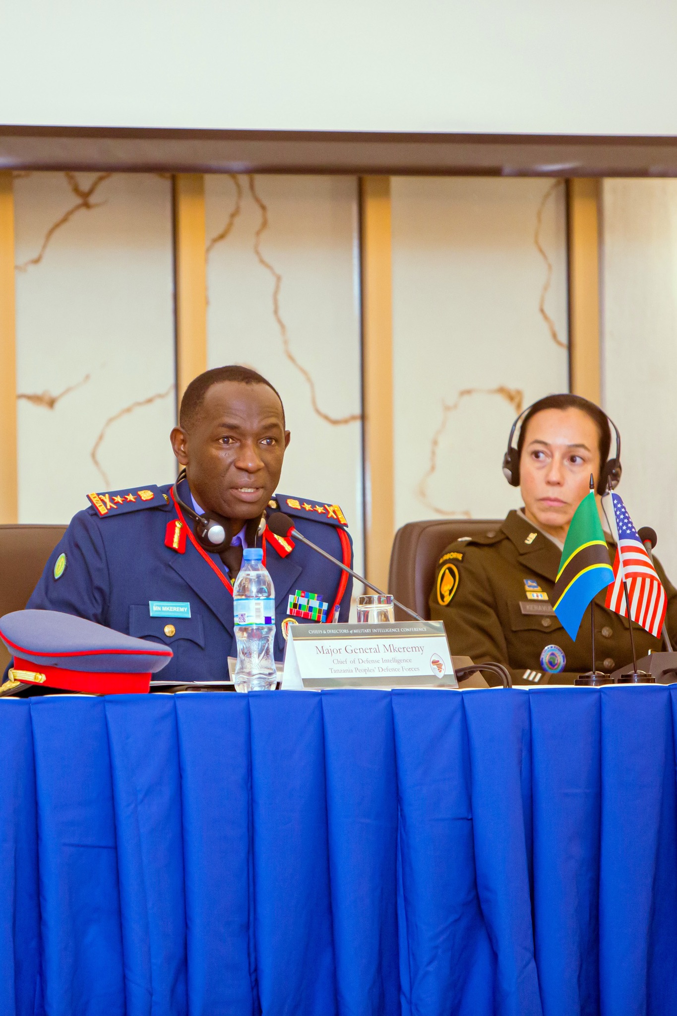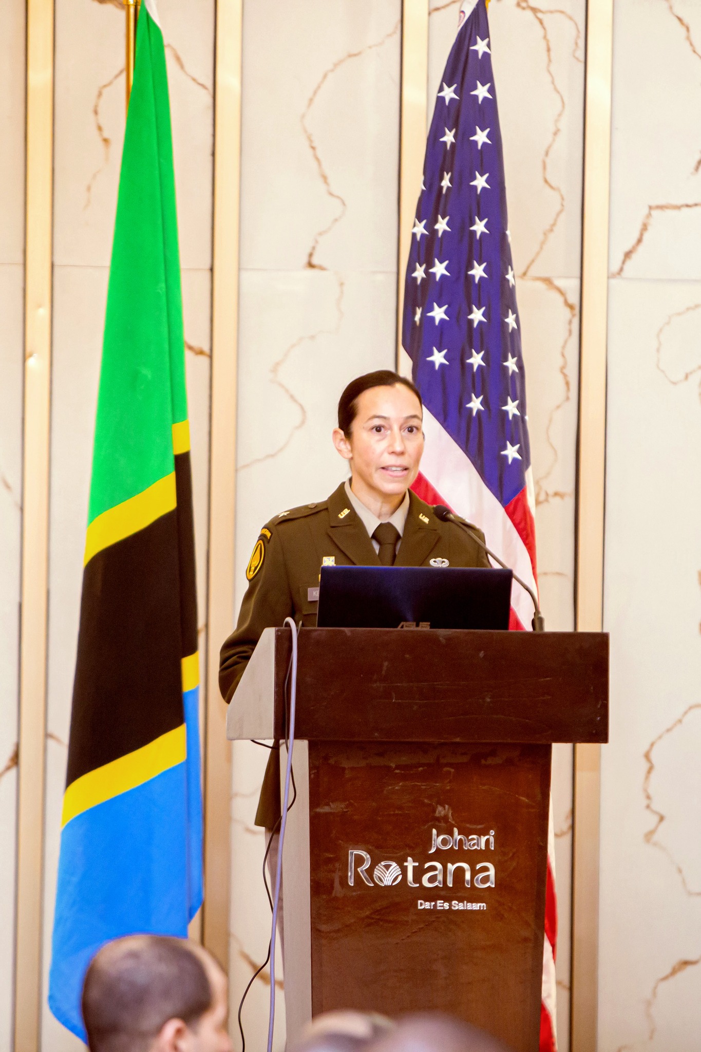 Keynote speakers included U.S. Army Brig. Gen. Rose Keravuori, AFRICOM director of intelligence, alongside TPDF Chief of Defence Intelligence Maj. Gen. Mbaraka Mkeremy.