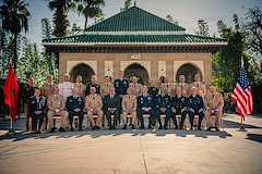U.S. Air Force Gen. Dagvin Anderson, commander of U.S. Africa Command and his team pose for a group photo with Moroccan Gen. Mohammed Berrid, Inspector General of the Moroccan Royal Armed Forces and other senior Moroccan defense officials in Rabat, Morocco Oct. 20, 2025. (photo by Soufiane Zarhouni, U.S. Consulate in Morocco)