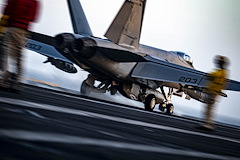 250823-N-XK462-2136 U.S. CENTRAL COMMAND AREA OF RESPONSIBILITY (Aug. 23, 2025) The Nimitz-class aircraft carrier USS Nimitz (CVN 68) conducts flight operations in the U.S. Central Command area of responsibility. (Official U.S. Navy photo)